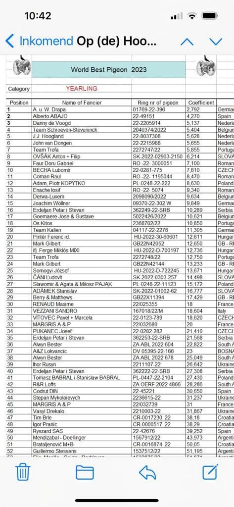 2023年FCI世界最佳一岁鸽冠军