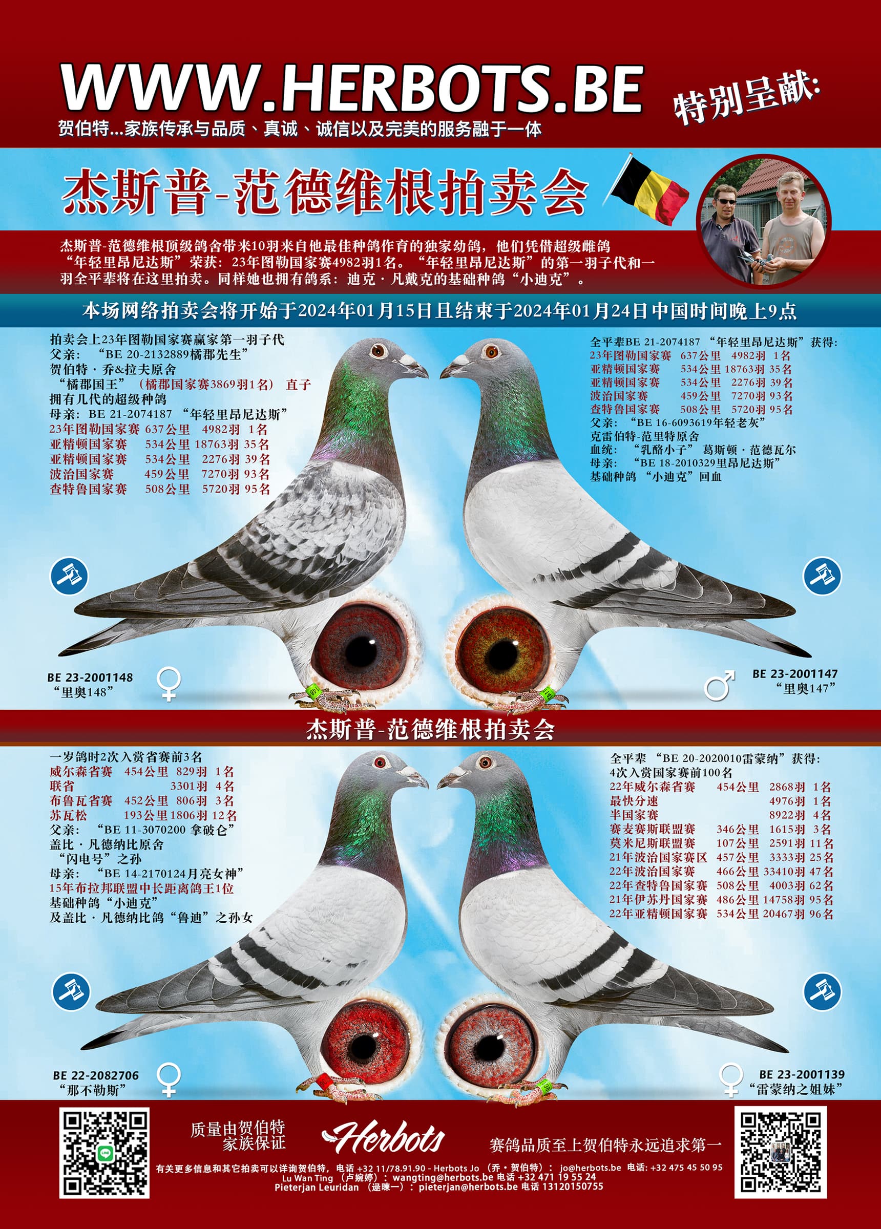 荣获:23年图勒国家赛4982羽1名。“年轻里昂尼达斯”的第一羽子代和一羽全平辈将在这里拍卖。同样她也拥有鸽系:迪克·凡戴克的基础种鸽“小迪克”。