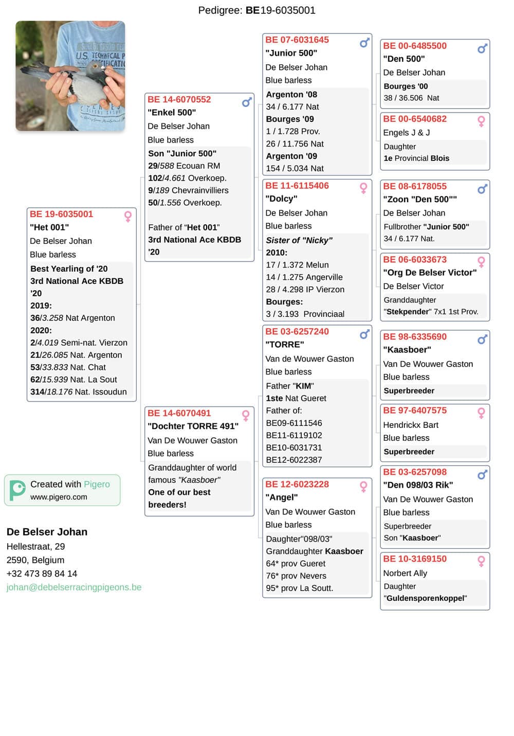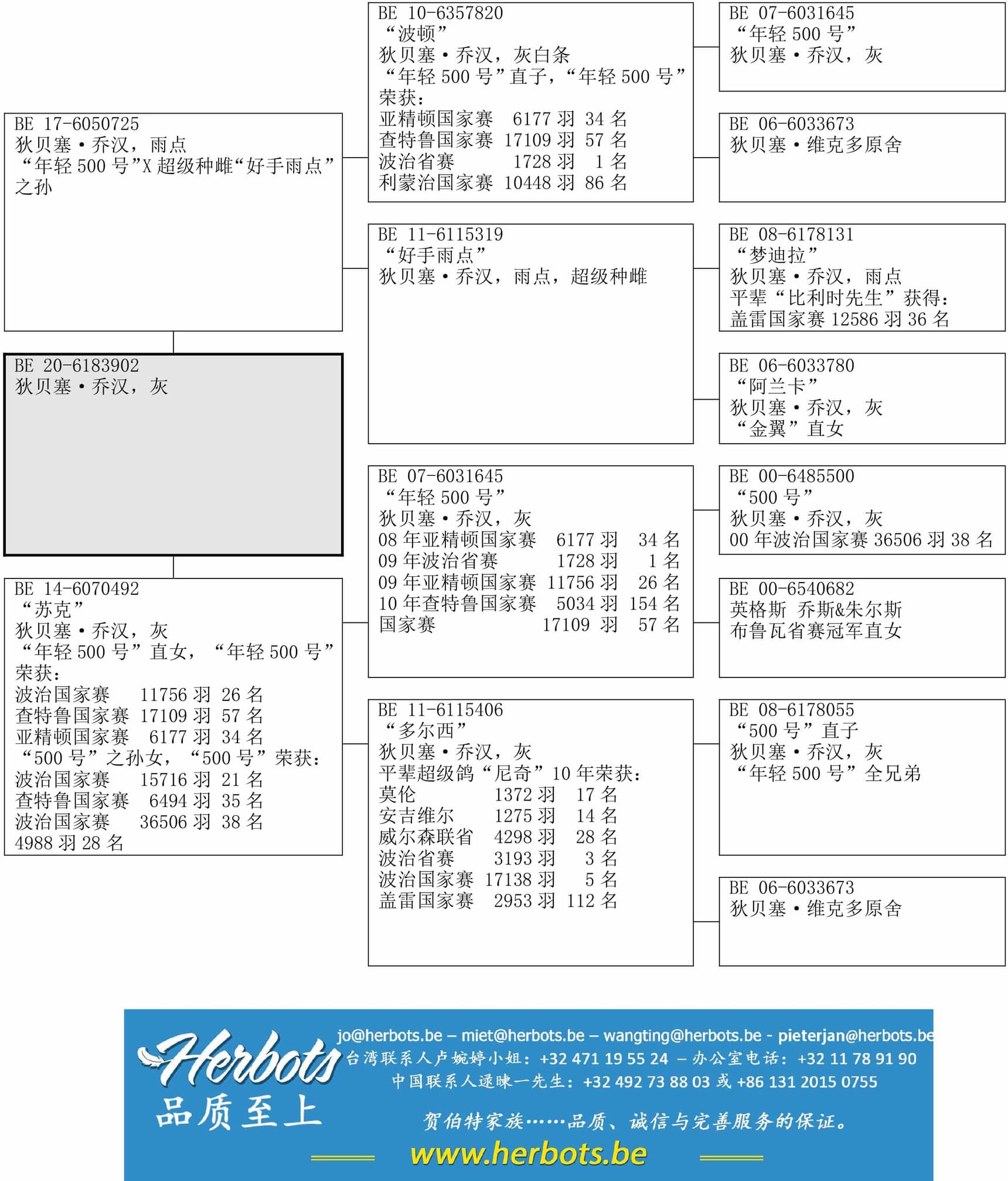 “年轻500”X“多尔西001号”(同祖父母);荣获:20年KBDB 中长距离鸽王全国3位