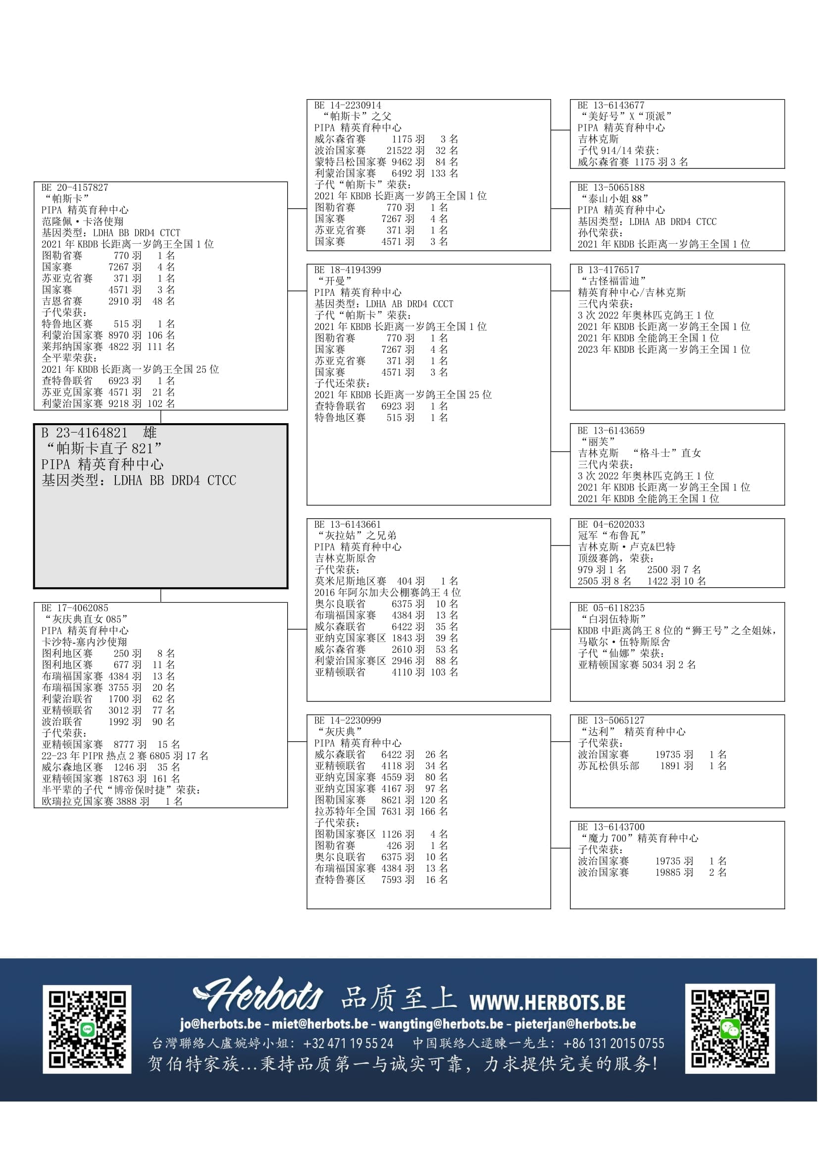 其祖辈是基础配对“古怪福雷迪” x “丽芙”, 这一配对作育出多羽奥林匹克代表鸽及全国鸽王1位