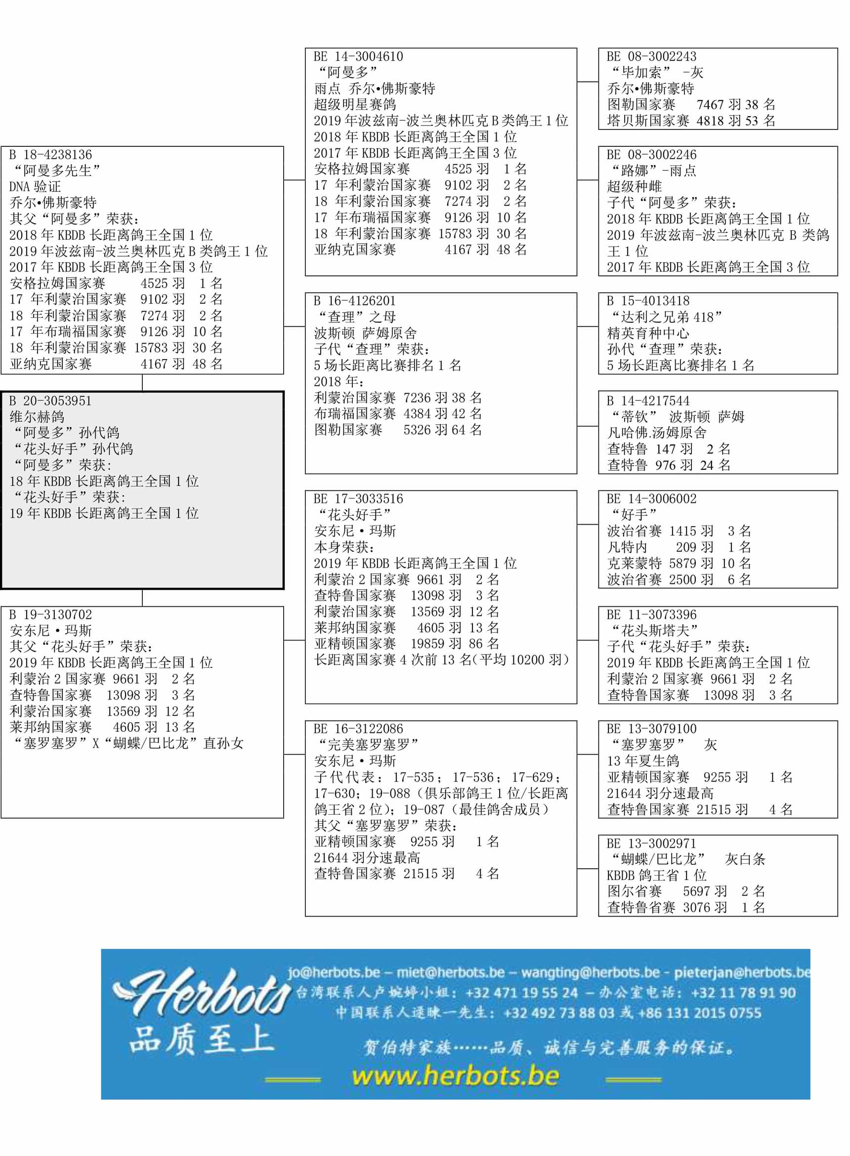 作育者: VELGHE PIGEONS 维尔赫信鸽