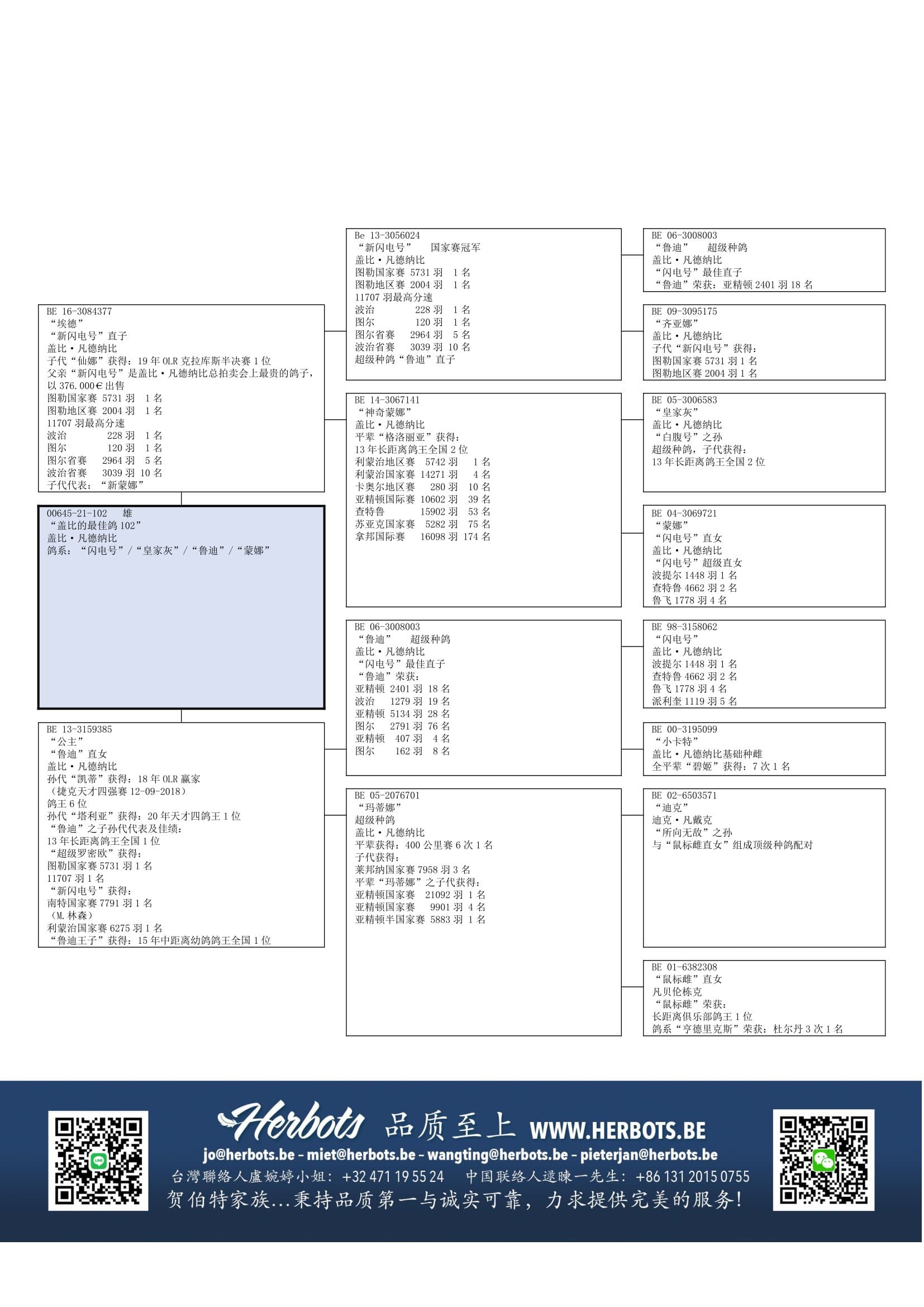 “新闪电号”是盖比·凡德纳比总拍卖会上最贵的鸽子,以376.000€出售