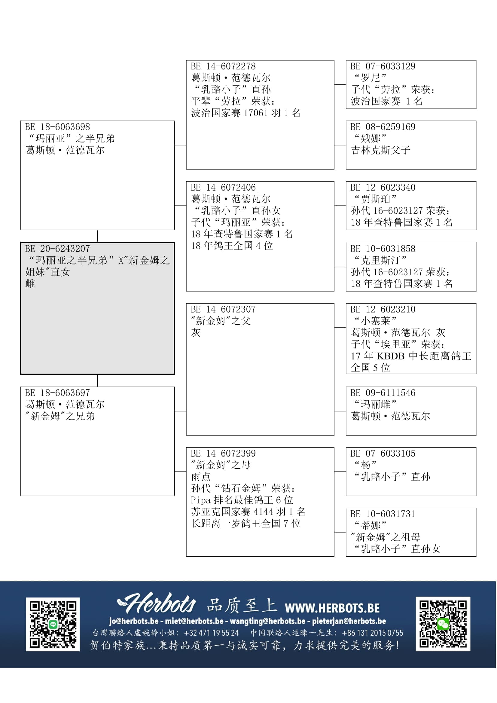 “乳酪小子直孙” ( 全平辈“劳拉”荣获: 波治国家赛一岁鸽组17,061羽1名) x “玛丽亚之母”作出