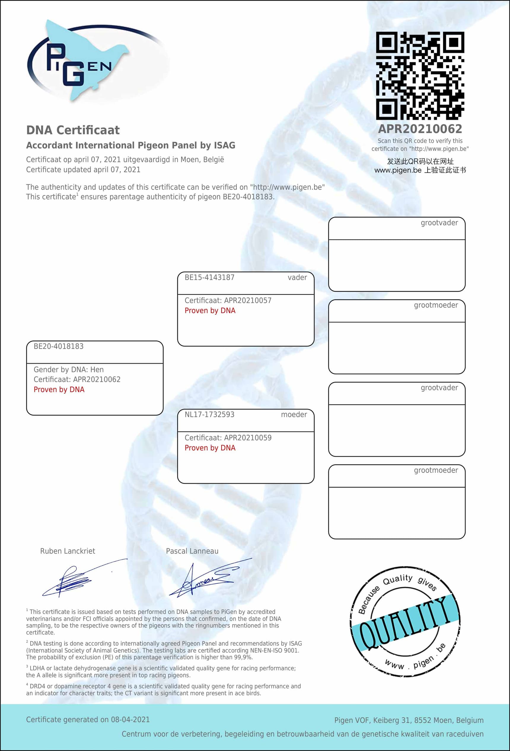鸽系: 耶勒-耶勒玛 (“丽卡” x “灰本诺” x “塔拉”) x 阿里安.宾斯
