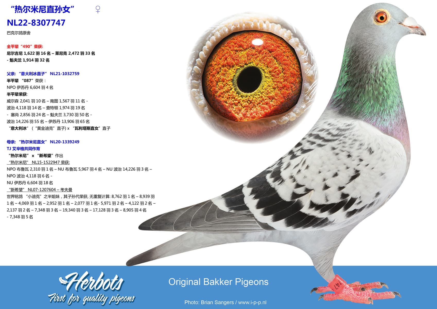 冠军雌鸽“伊维特”之全姐妹. “伊维特” 荣获: