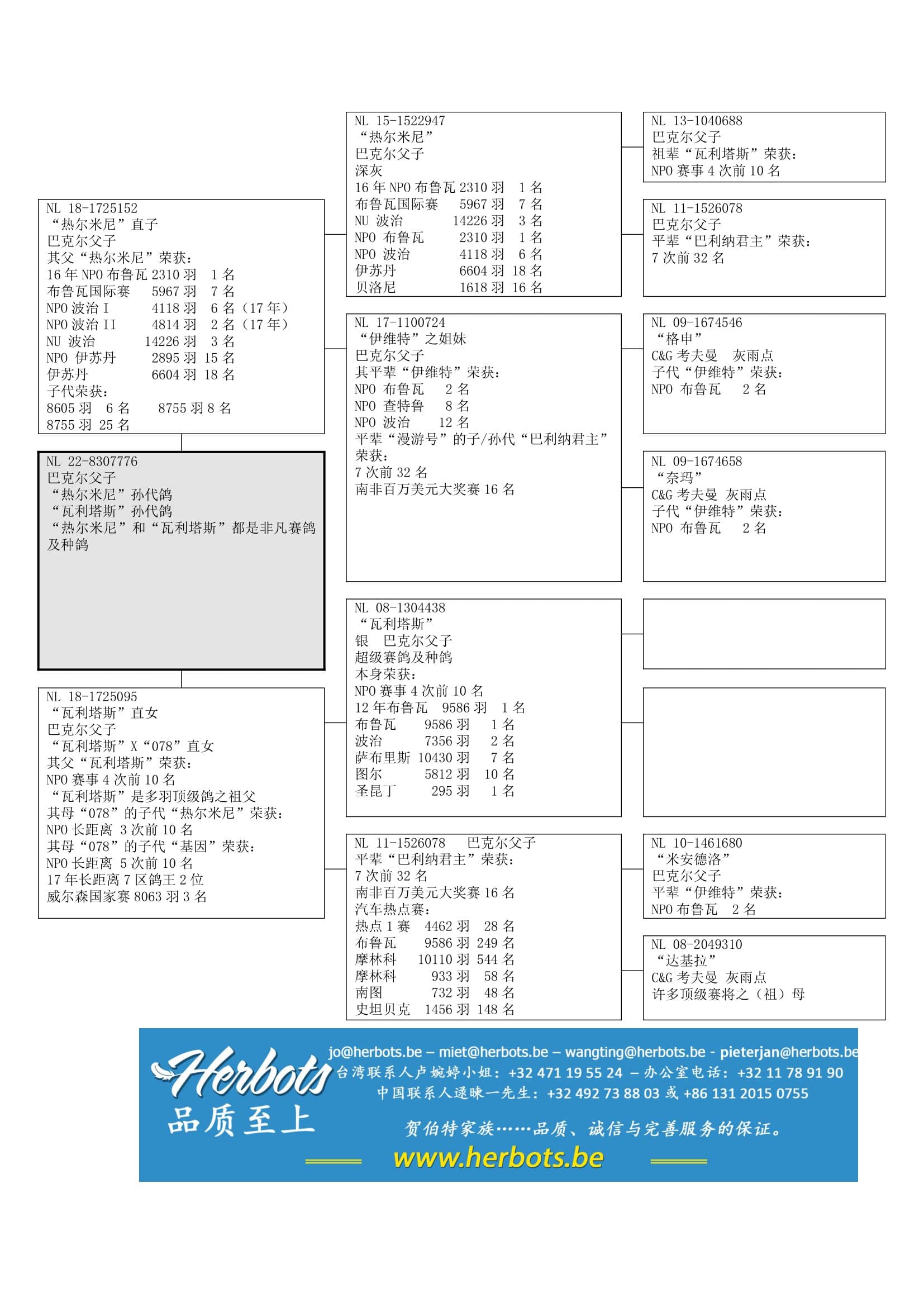 冠军雌鸽“伊维特”之全姐妹. “伊维特” 荣获: