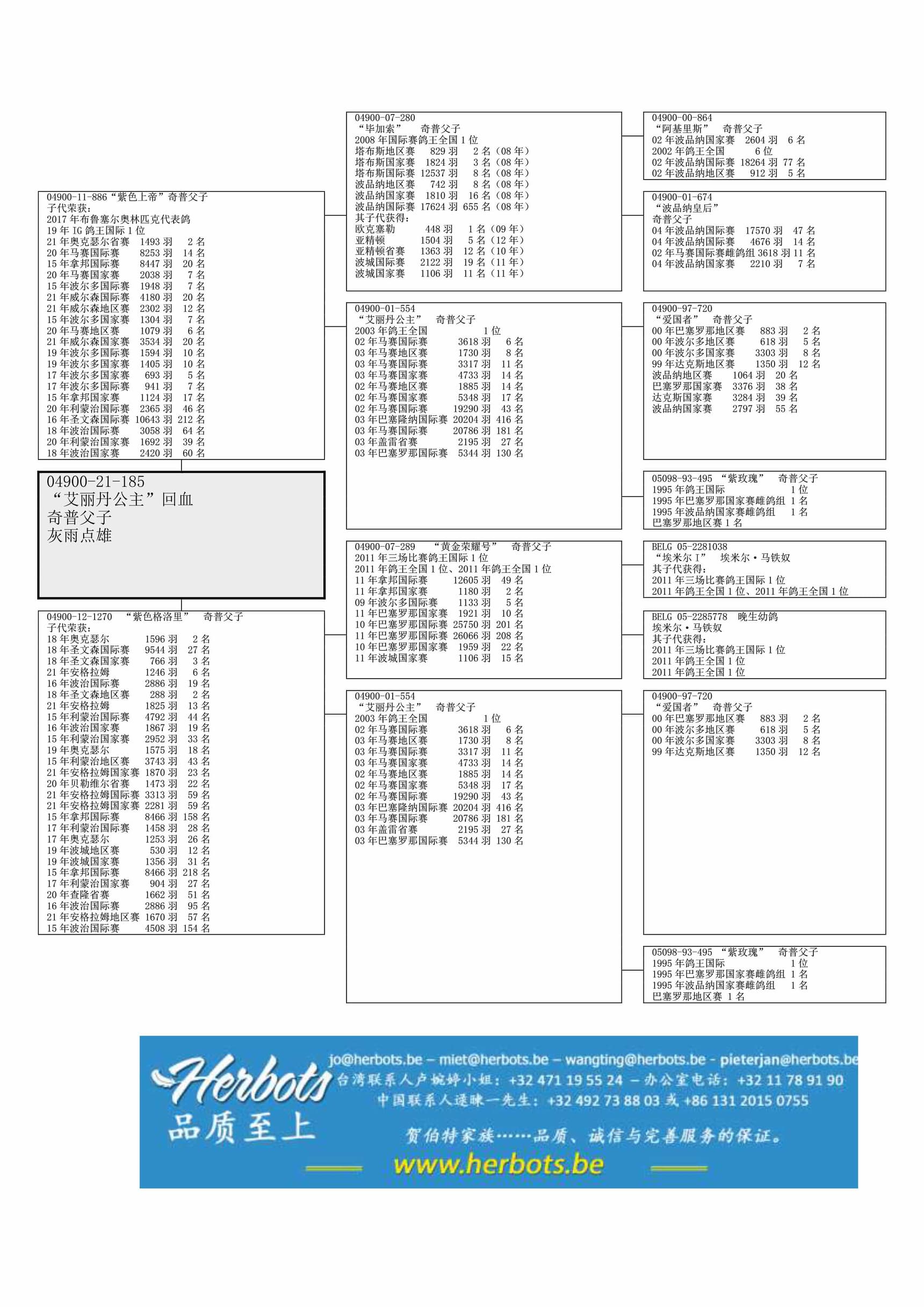 子代荣获: 19年IG马拉松鸽王国际1位 - 波尔多国际赛 941羽7名 - 马赛国际赛 8,253羽14名 – 波尔多国际赛 1,594羽10名 - 利蒙治国际赛 2,365羽46名 - 波治国际赛 3,058羽64名