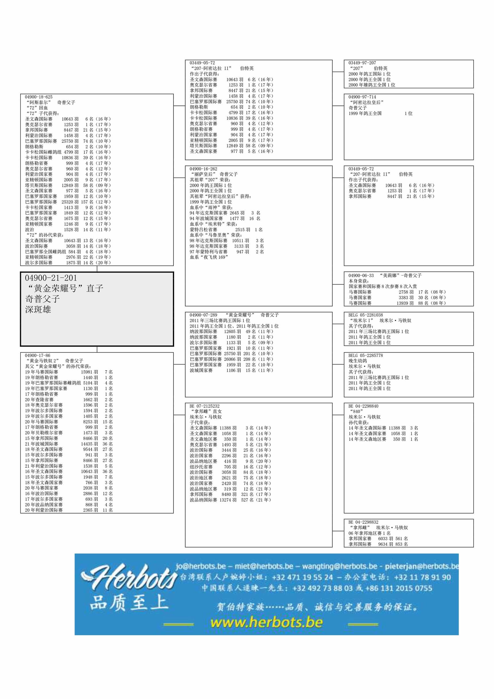 11年3场国际赛鸽王国际1位 – 波尔多国际赛 1,133羽5名 – 拿邦国际赛 12,605羽49名 - 巴塞罗那国际赛 25,750羽201名 – 巴塞罗那国际赛 26,066羽207名