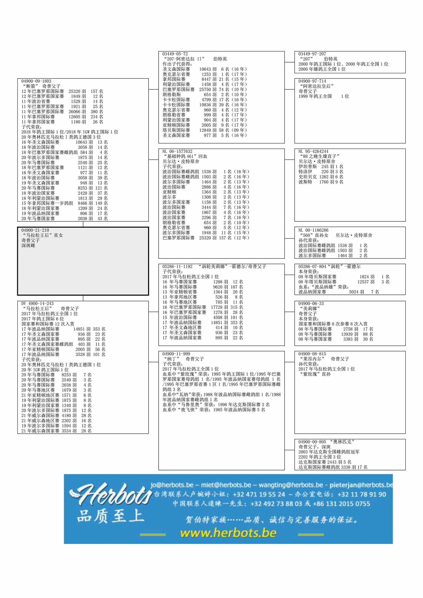 1,921羽25名 – 拿邦国家赛 1,180羽26名 – 巴塞罗那国际赛 25,320羽157名 – 拿邦国际赛 12,605羽234名– 巴塞罗那国际赛 26,066羽380名