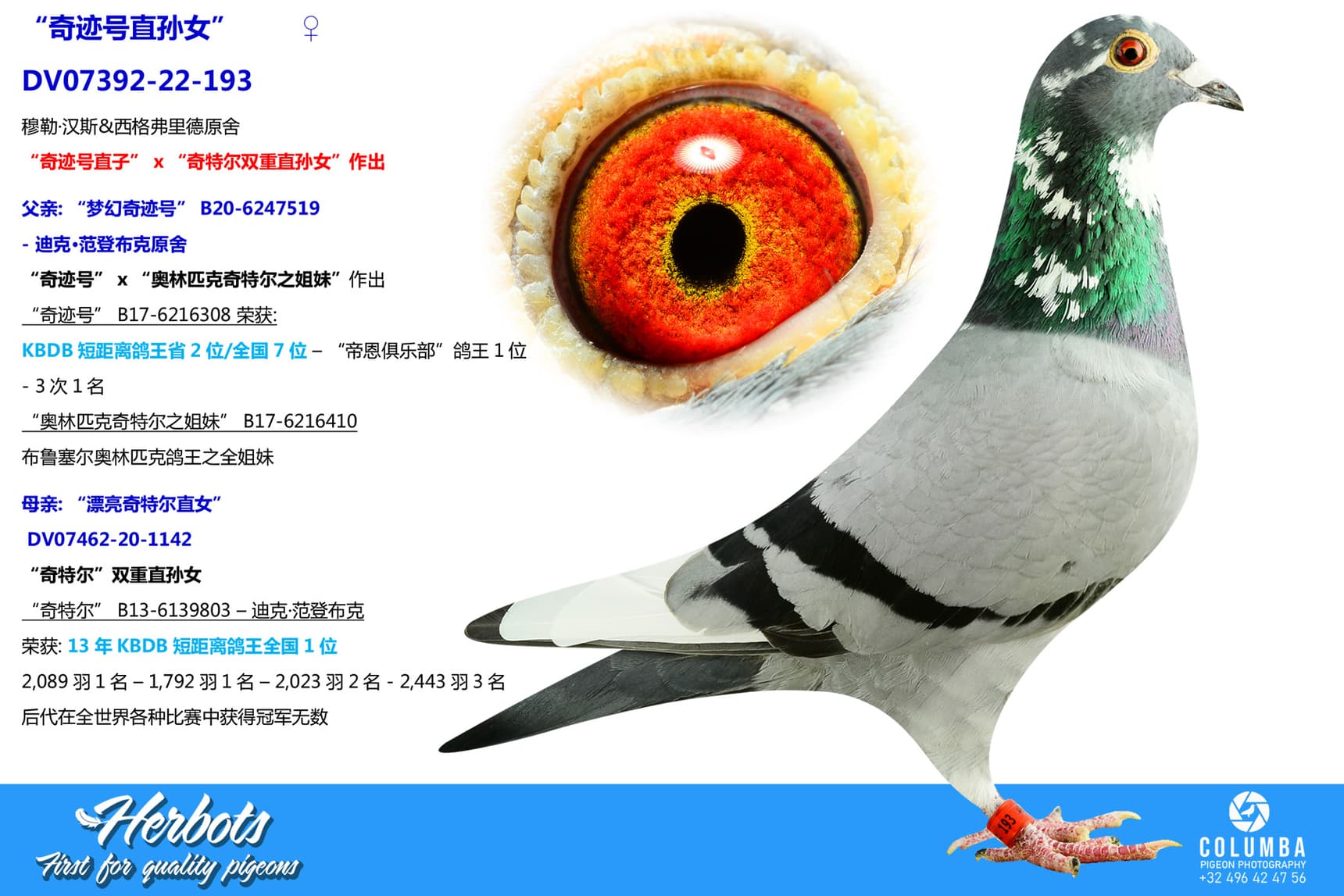 荣获: 13年KBDB短距离鸽王全国1位