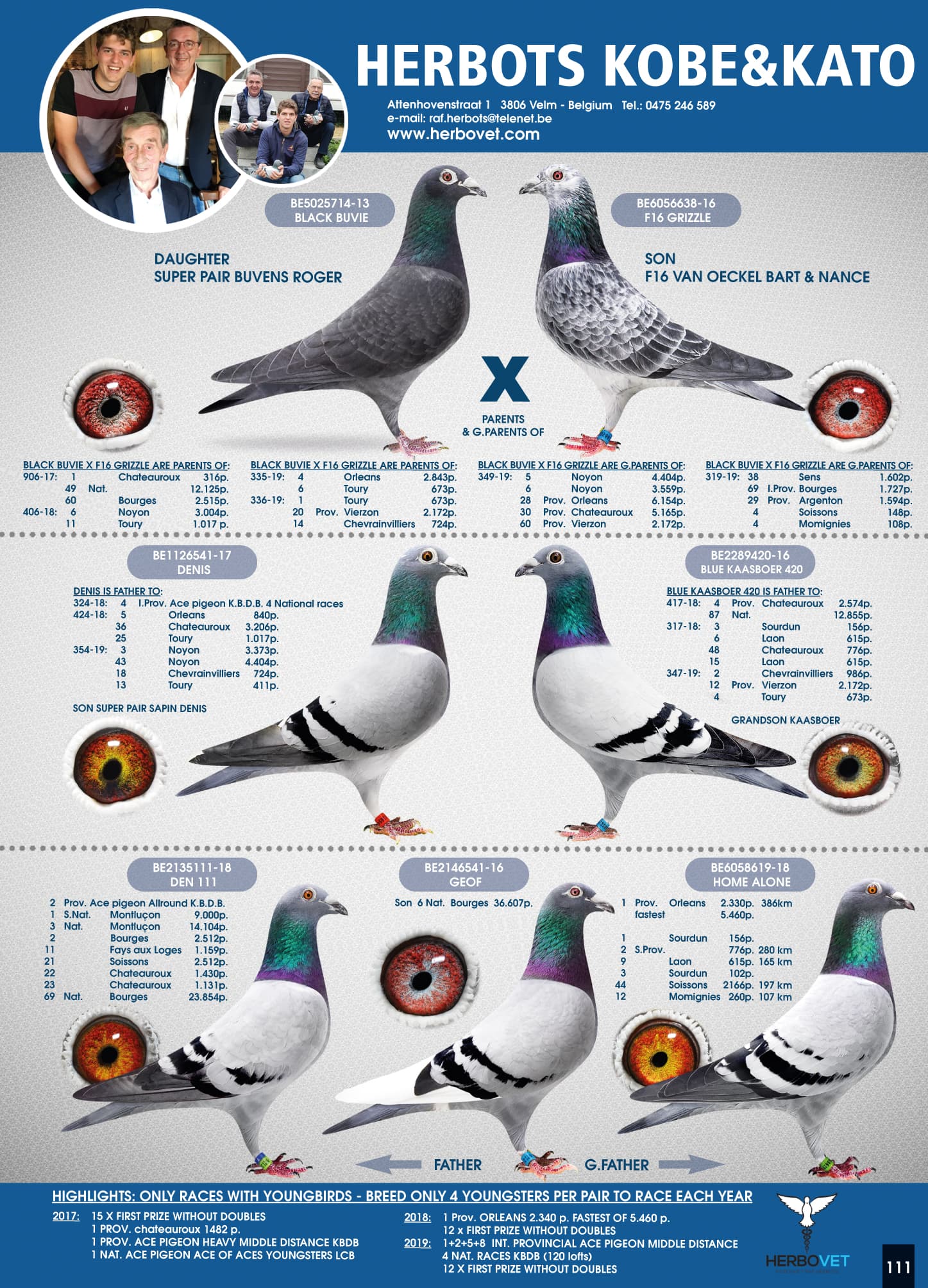 莫米尼斯  301羽   4名 107公里 - 苏瓦松  148羽   4名 197公里 - 莫米尼斯 108羽   4名 107公里 - 莫米尼斯 238羽18名 - 森斯  219羽  8名 316公里 - 森斯半省赛 1,602羽38名 - 波治国家赛幼鸽组  667羽35名455公里