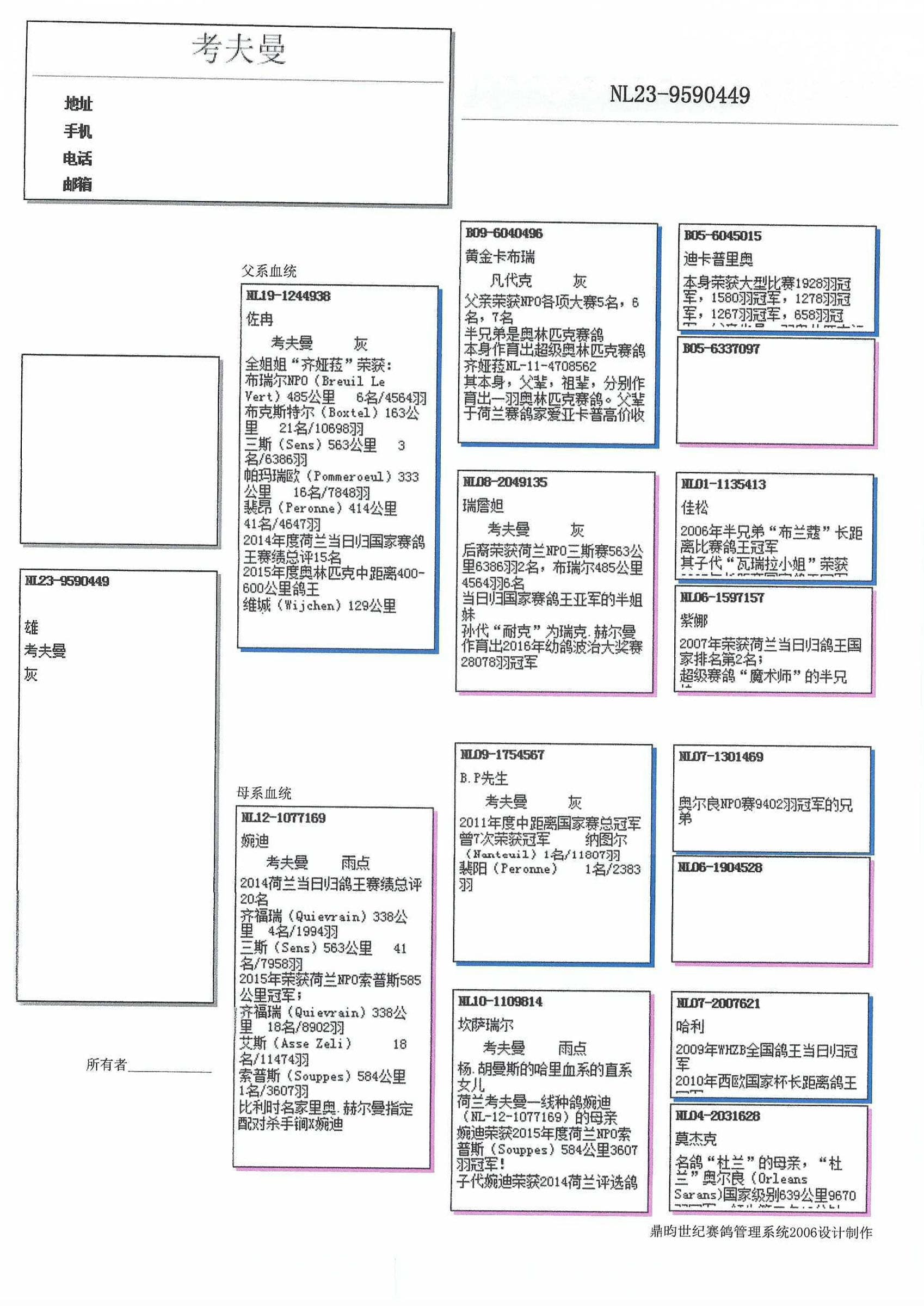 “BP先生” (2011年NPO中距离鸽王全国1位 – 南图 11,807羽1名, 贝洛尼 2,383羽1名) x “坎莎瑞尔” (“哈利”直女 – 杨·胡曼斯) 直女