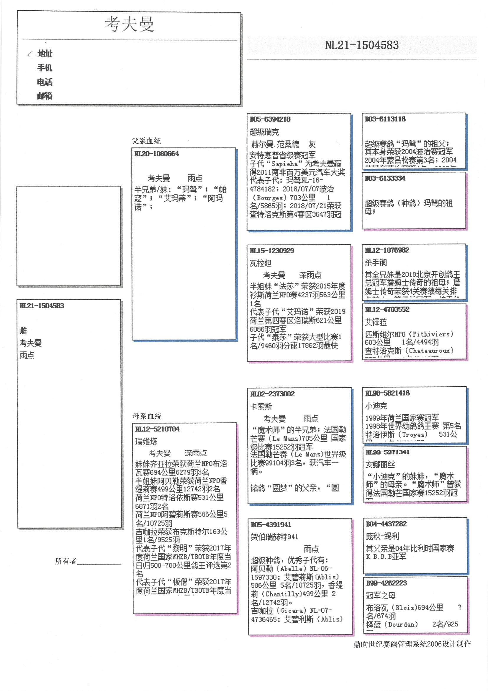 “艾玛蒂”: WHZB/王中王长距离鸽王全国4位