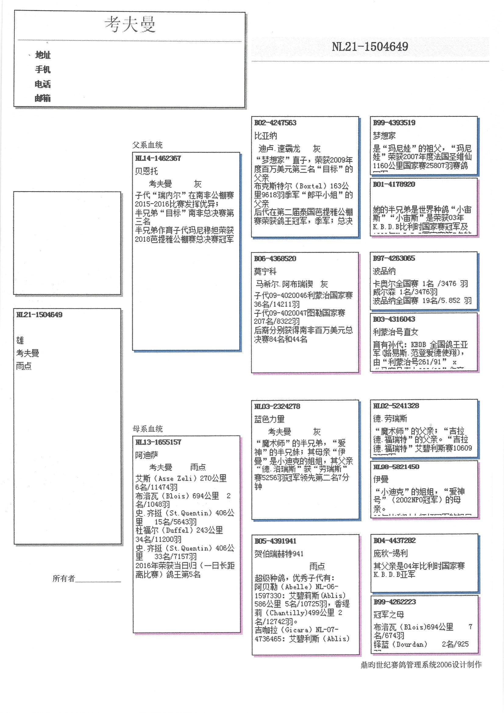 荣获 16年N.U.长距离鸽王 5位