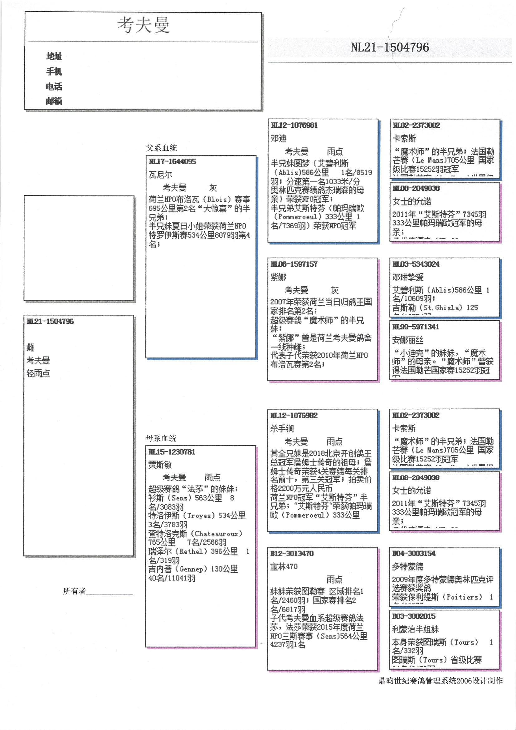 “邓迪” (“杀手锏”之兄弟) x “紫娜” (07年一日长距离鸽王全国2位) 直子