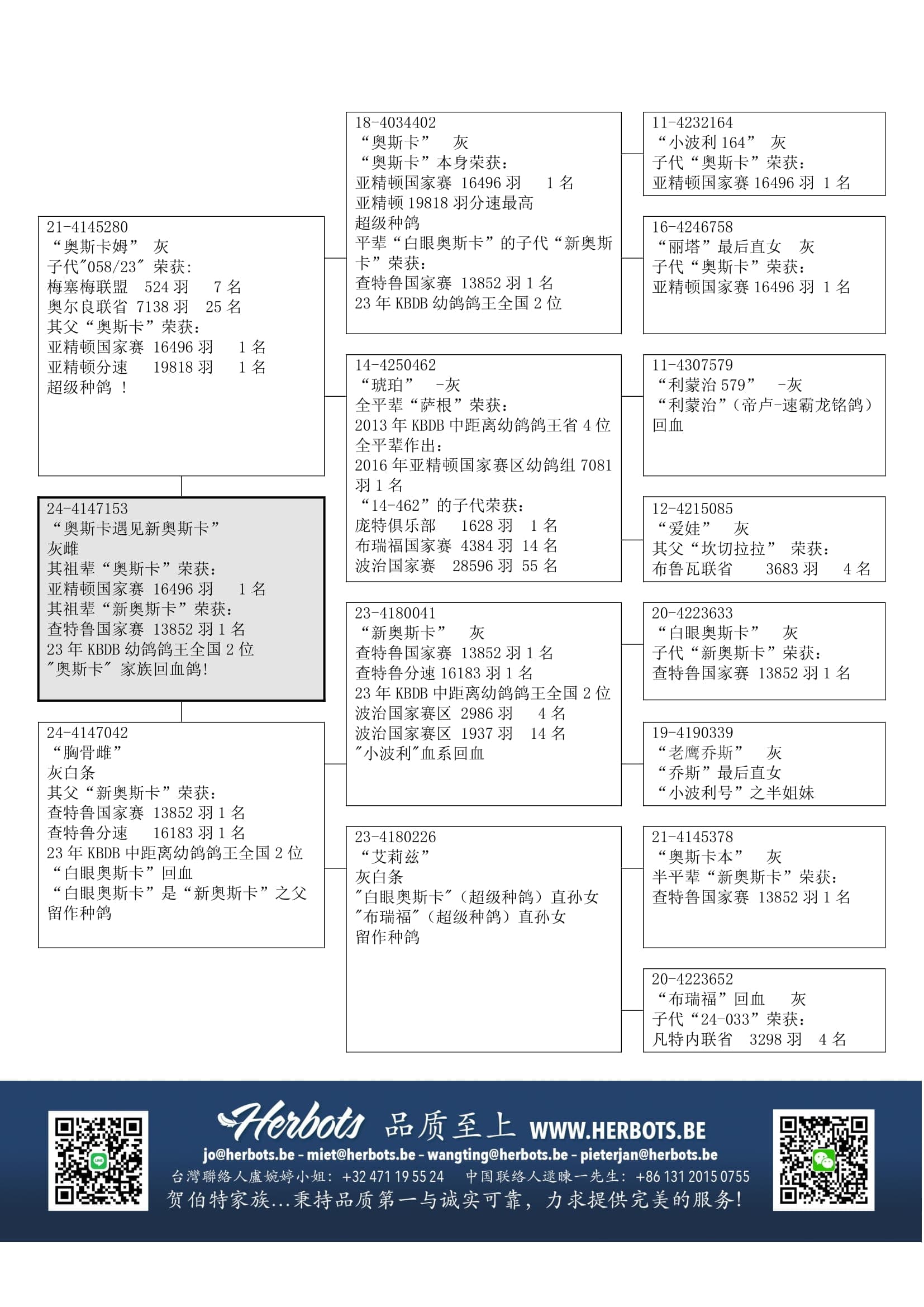 “白眼奥斯卡”(超级种鸽,以上提到的顶级鸽之父)直孙女