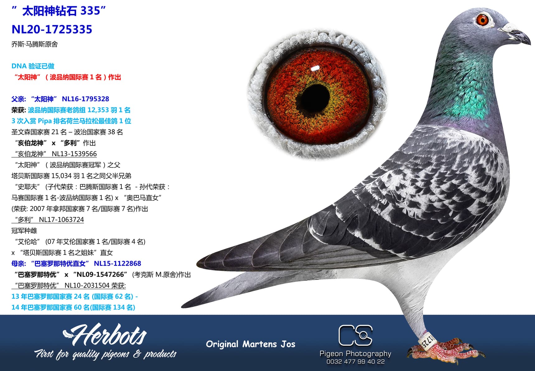 “太阳神”(鸽王全国1位以及波品纳国际赛1名)直子