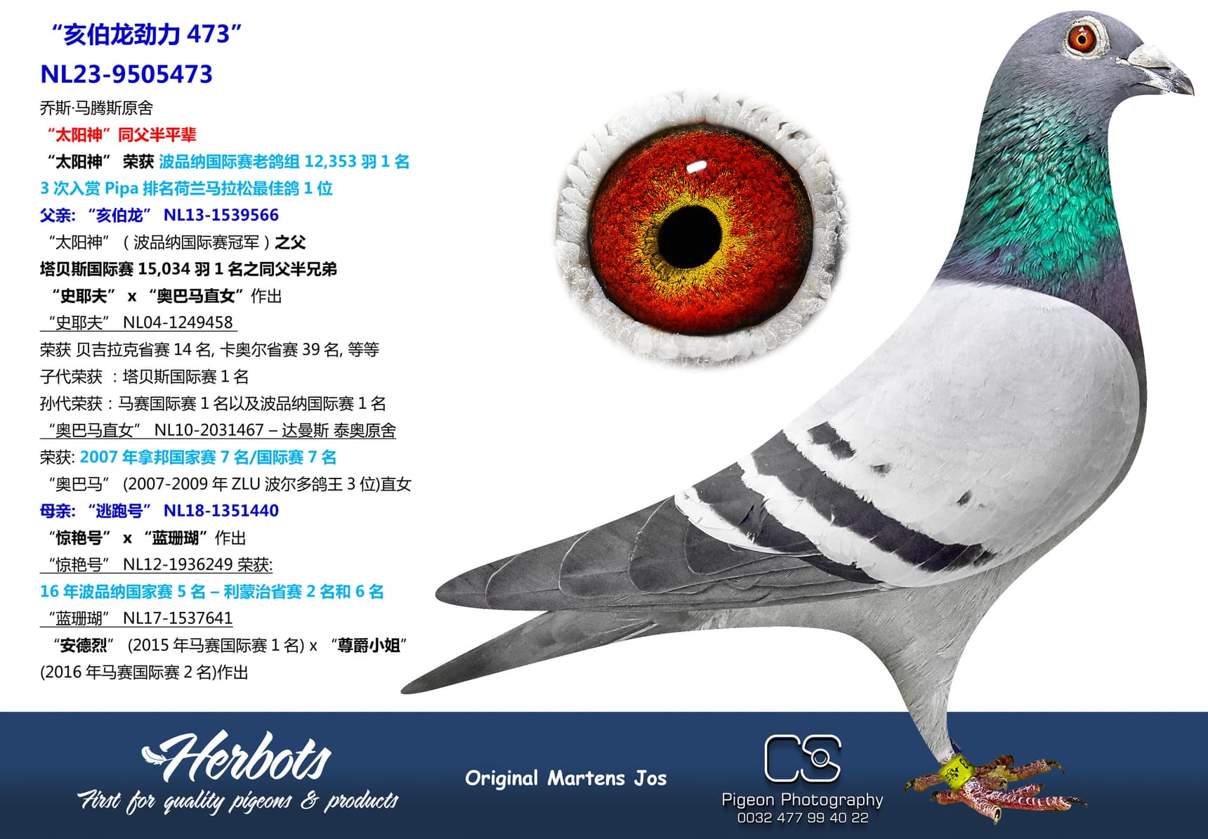 “史耶夫” (子代荣获:巴腾斯国际赛1名 - 孙代荣获:马赛国际赛1名-波品纳国际赛1名) x “奥巴马直女”(荣获: 2007年拿邦国家赛7名/国际赛7名)作出