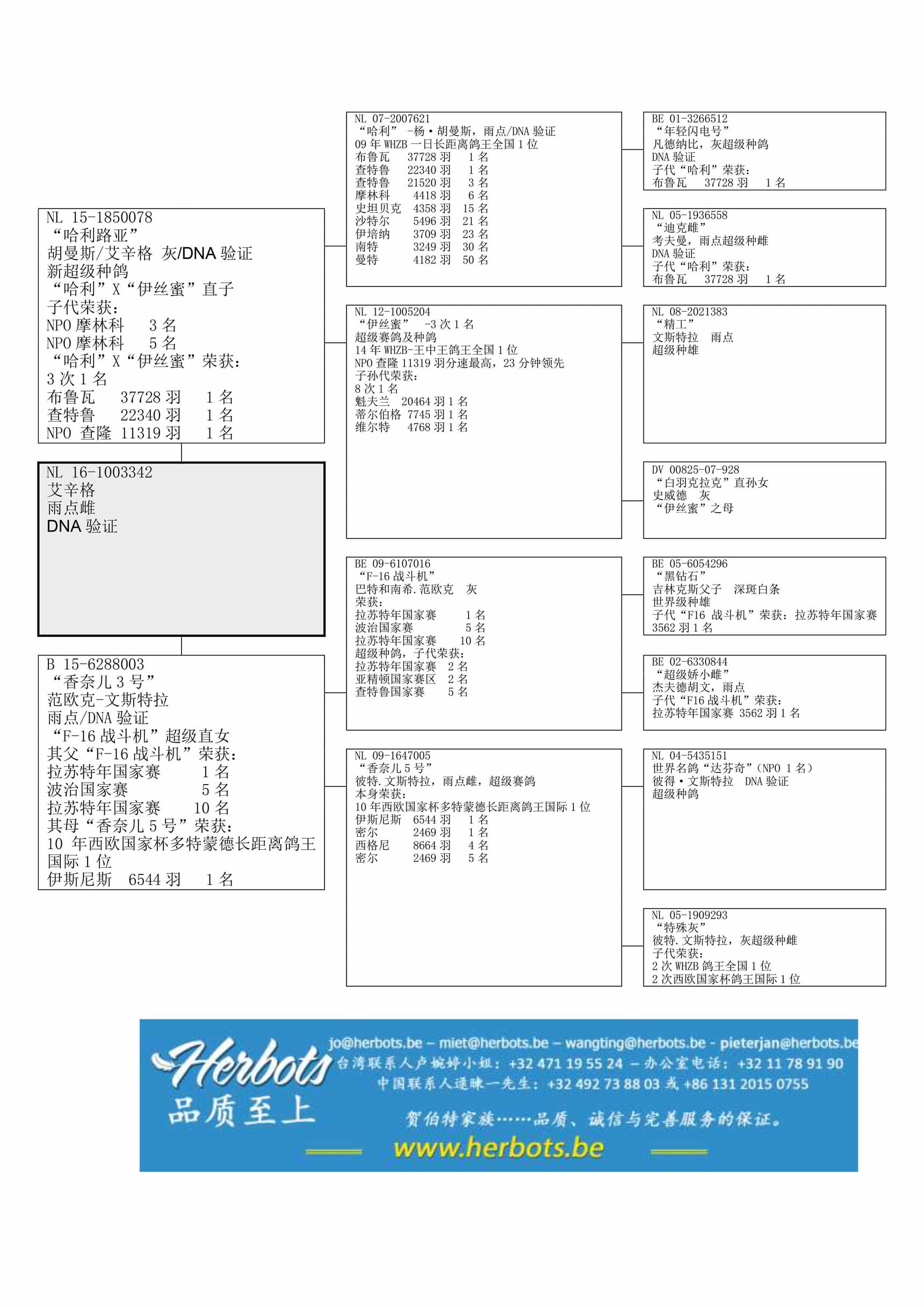 其祖辈“F16”荣获: 国家赛1名以及 基础种鸽 (范欧克·巴特& 南希)