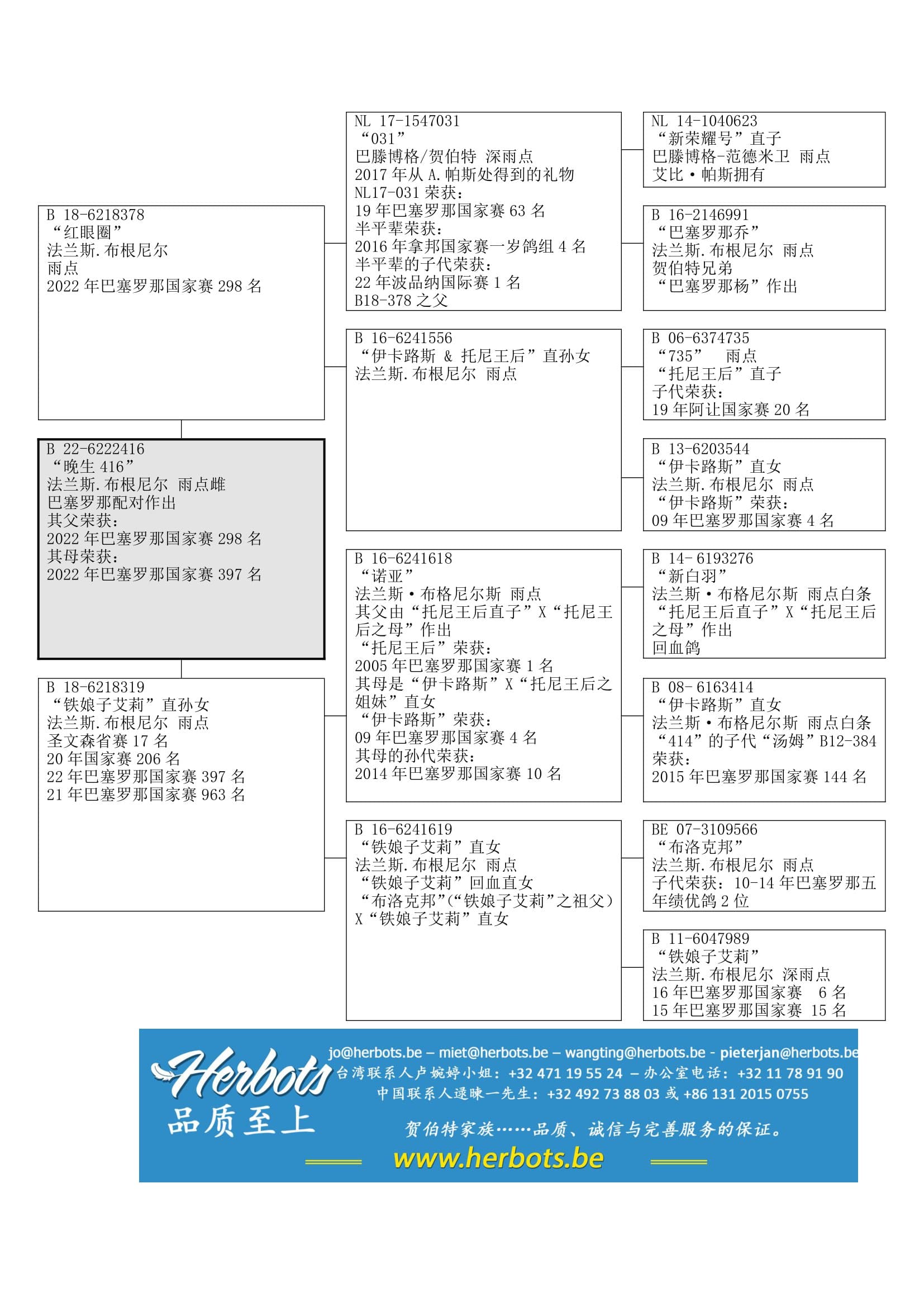 “布洛克邦” (基础种鸽之一)x “铁娘子艾莉” (16年巴塞罗那国家赛 6名以及15年巴塞罗那国家赛15名) 作出