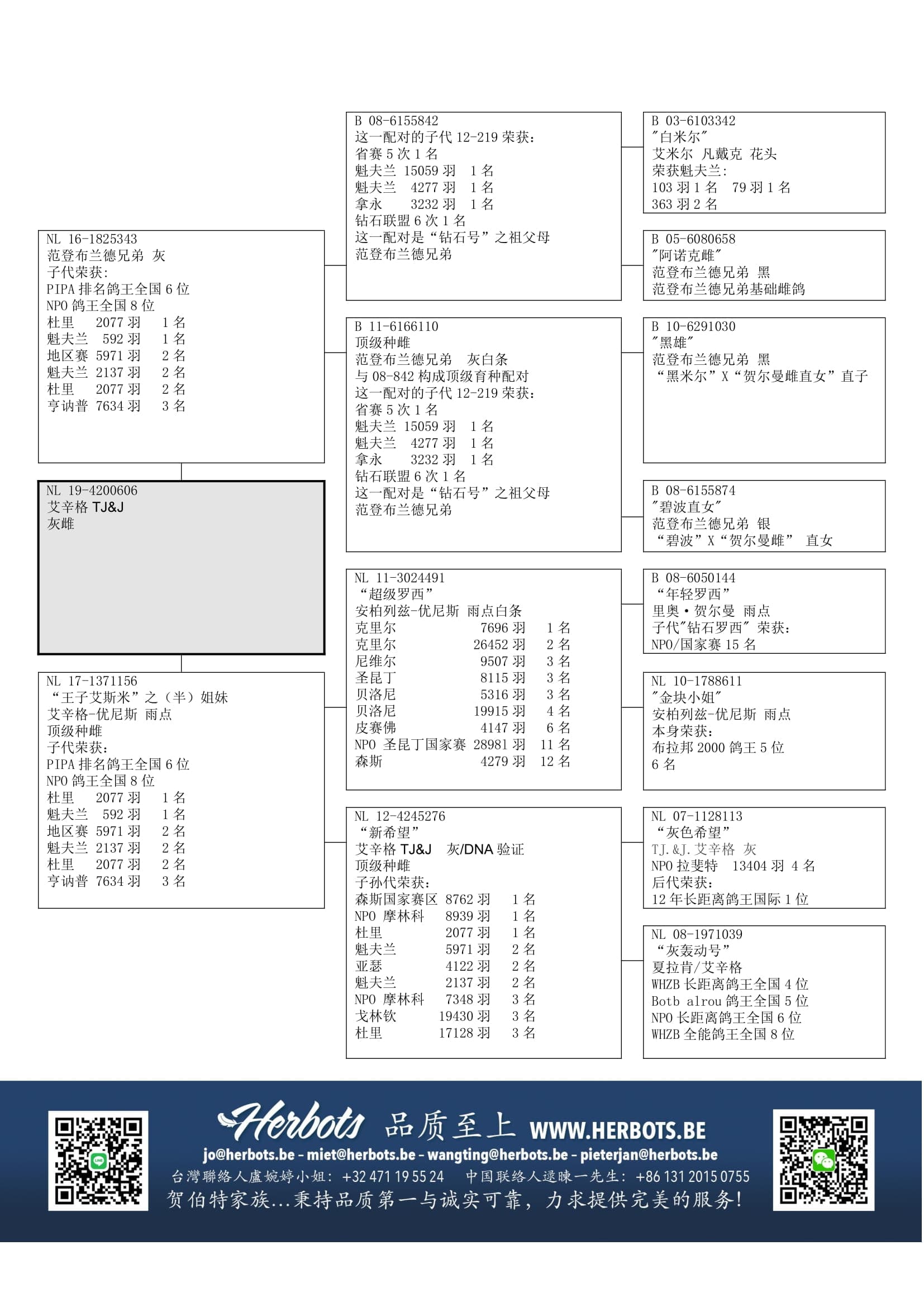 全平辈中有多羽高位翔绩鸽,包括: 钻石俱乐部6 次1名