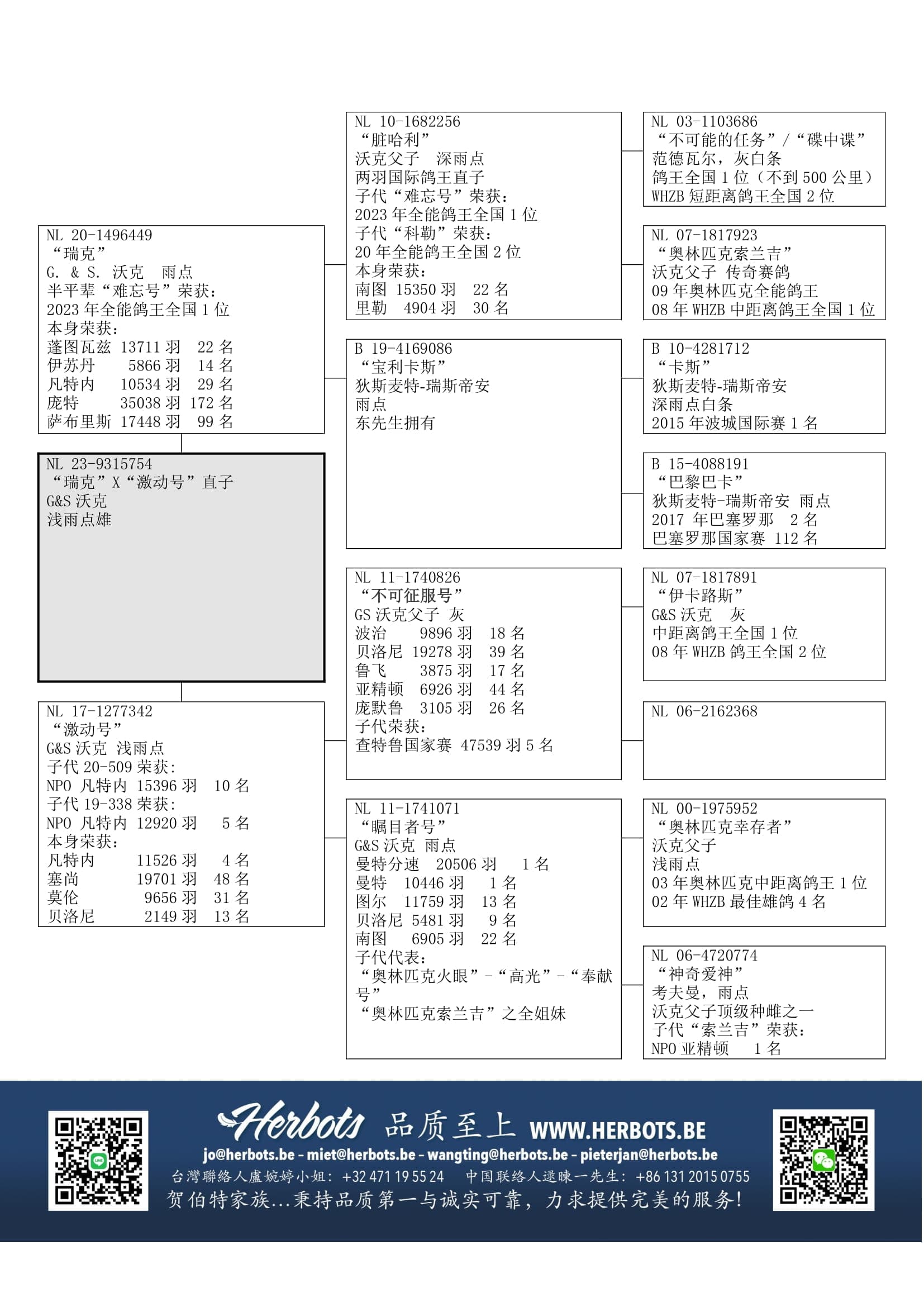 世界铭鸽“奥林匹克索兰吉”之全姐妹
