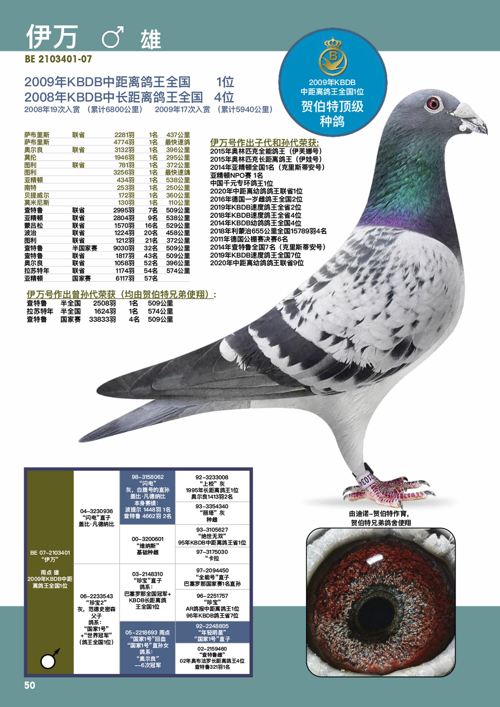 世界铭鸽“伊万” (KBDB鸽王全国1位和4位)之全兄弟