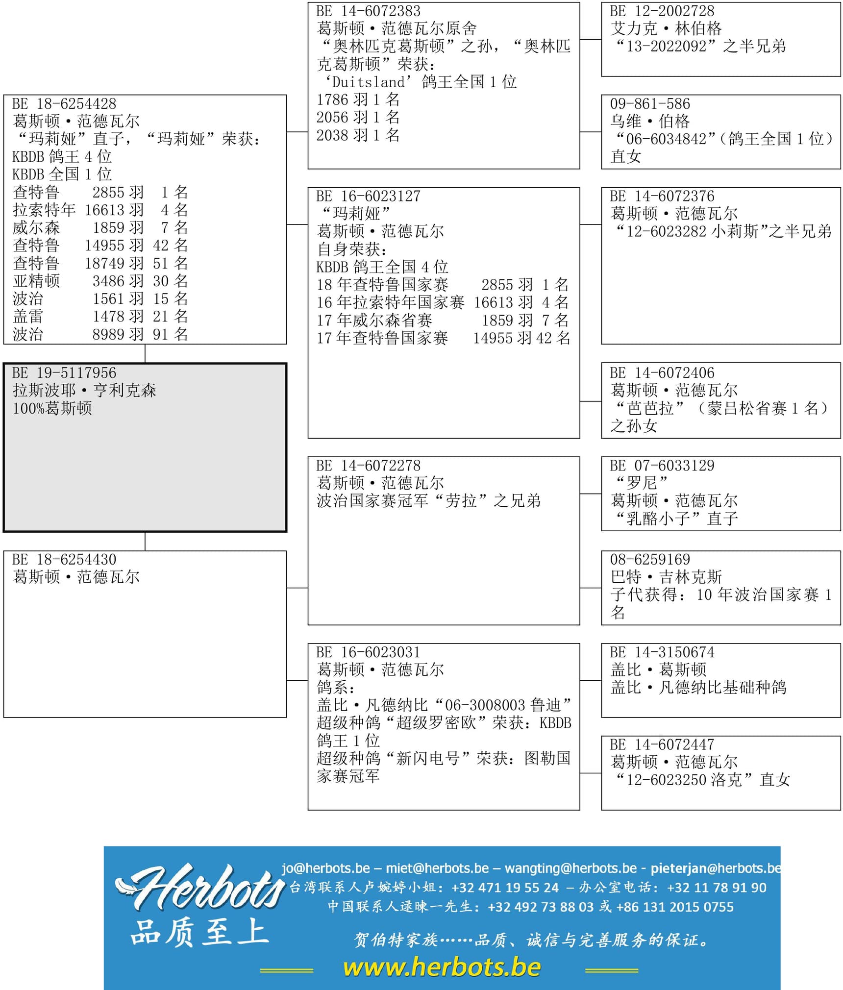 “玛丽亚”之孙,“玛丽亚”荣获:18年查特鲁国家赛 2855 羽 1名拉索特年国家赛 16613羽 4名查特鲁国家赛 14955羽 42名查特鲁国家赛 18749羽 51名