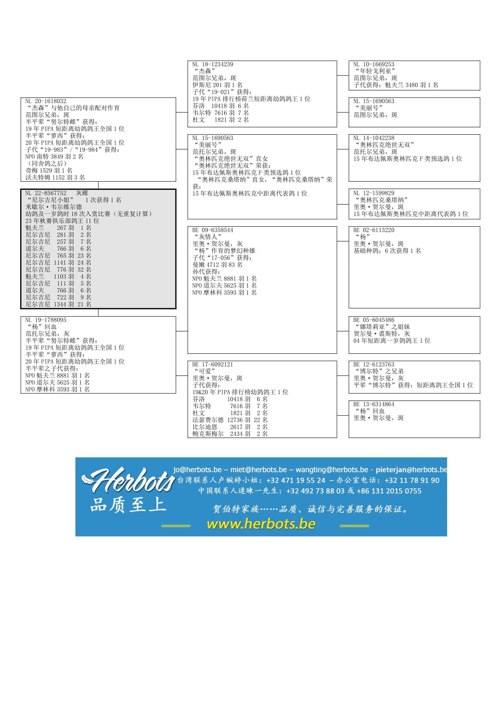100%里奥·贺尔曼 –种鸽鸽系 “博尔特”, “杨”, “纳塔莉亚”