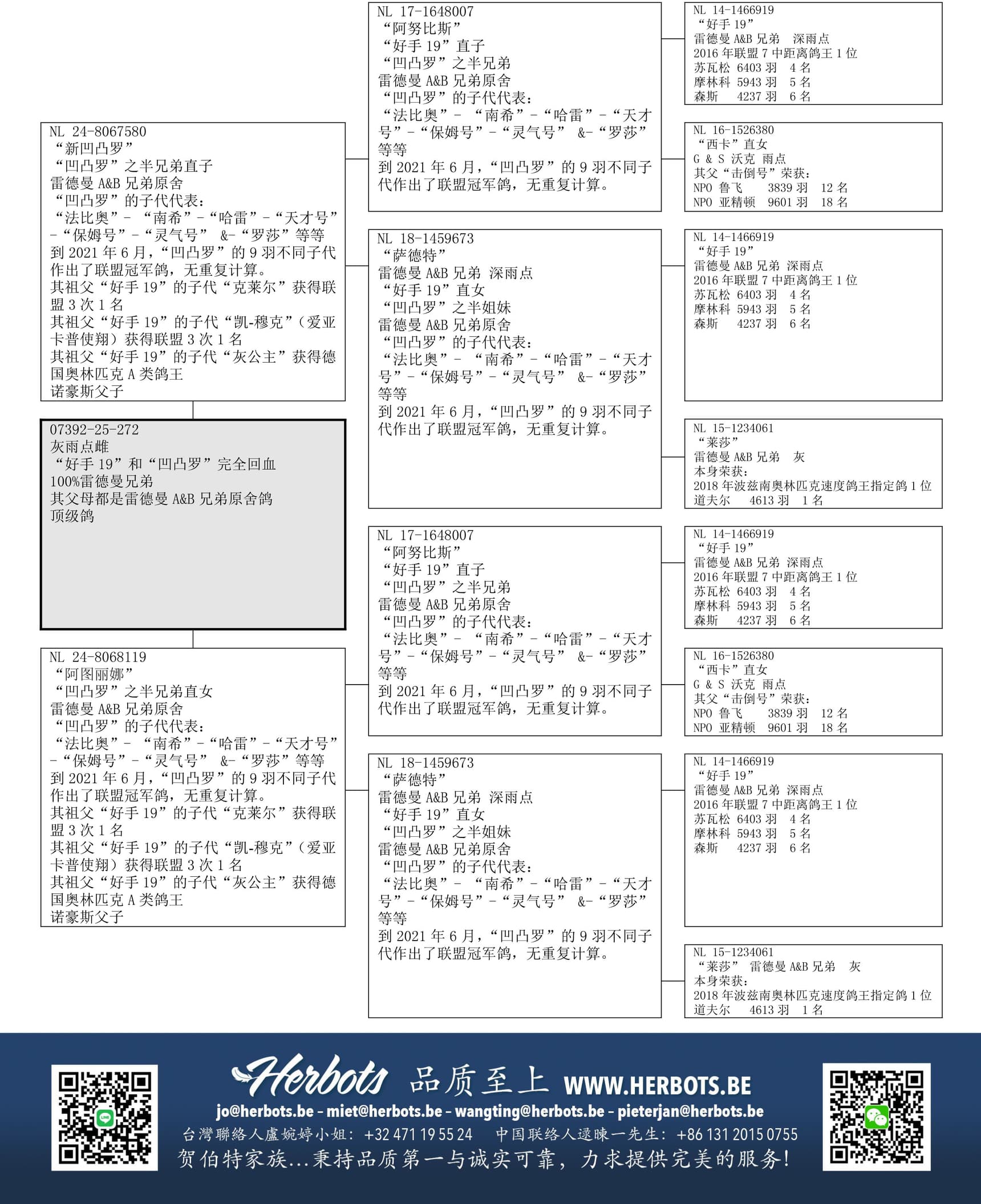 13,411羽1名 - 文洛省赛 4,910羽5名 – 等等)