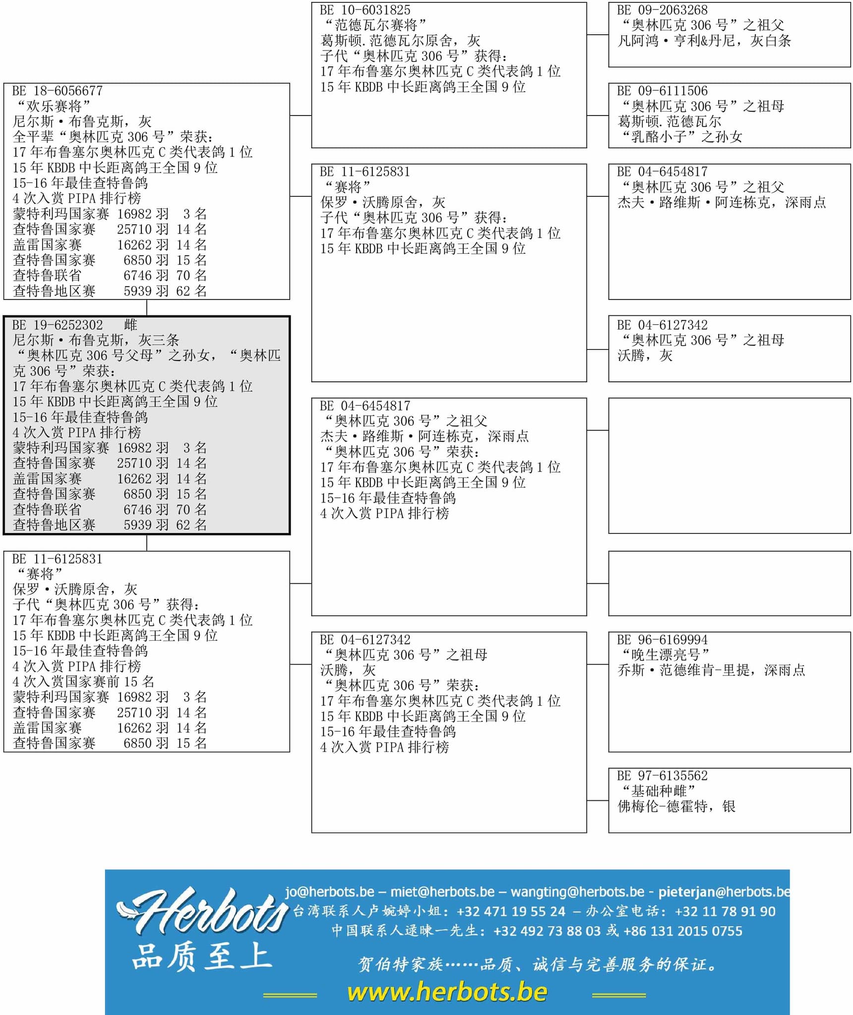 母亲:BE 11-6125831“赛将”子代“奥林匹克306号”获得:17年布达佩斯奥林匹克C类代表鸽1位