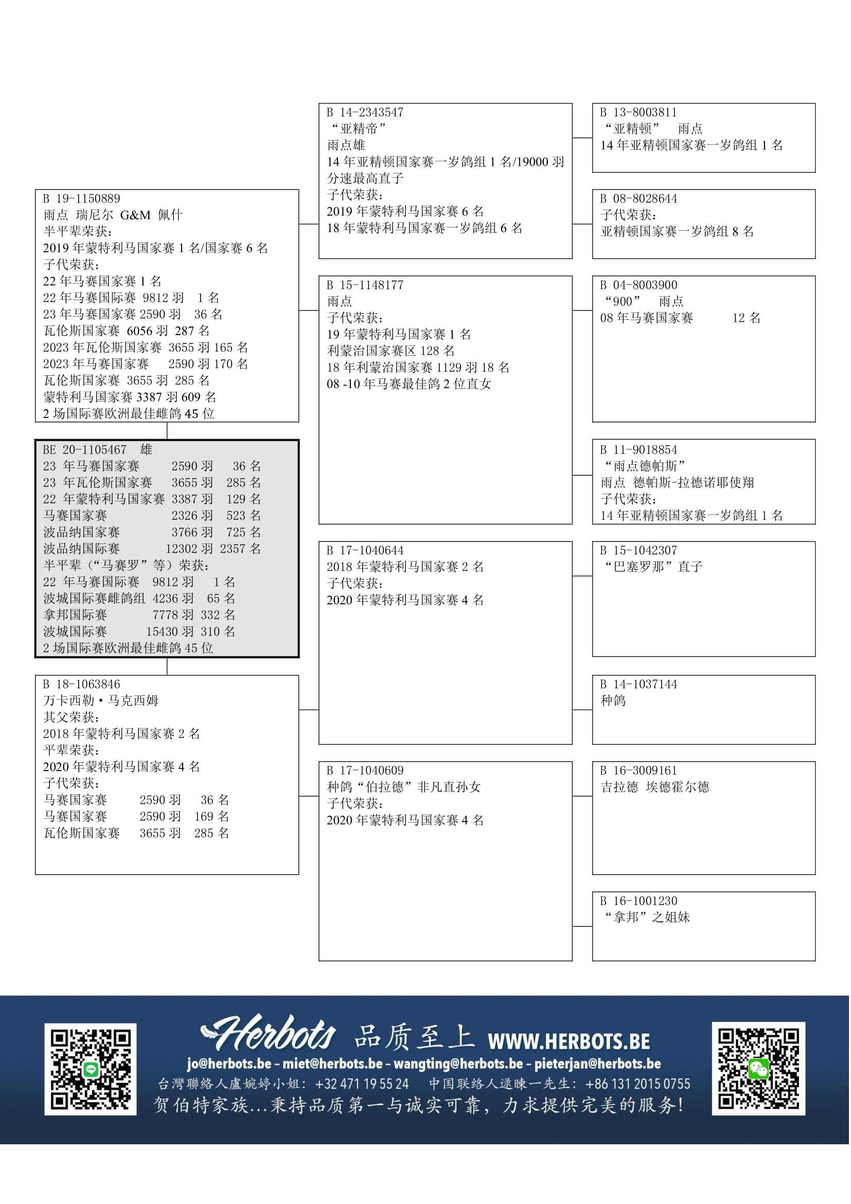 “B14-2343547” (亚精顿国家赛分速 19,000多羽1名直子) x “B15-1148177” (08年马赛国家赛12名直女)作出