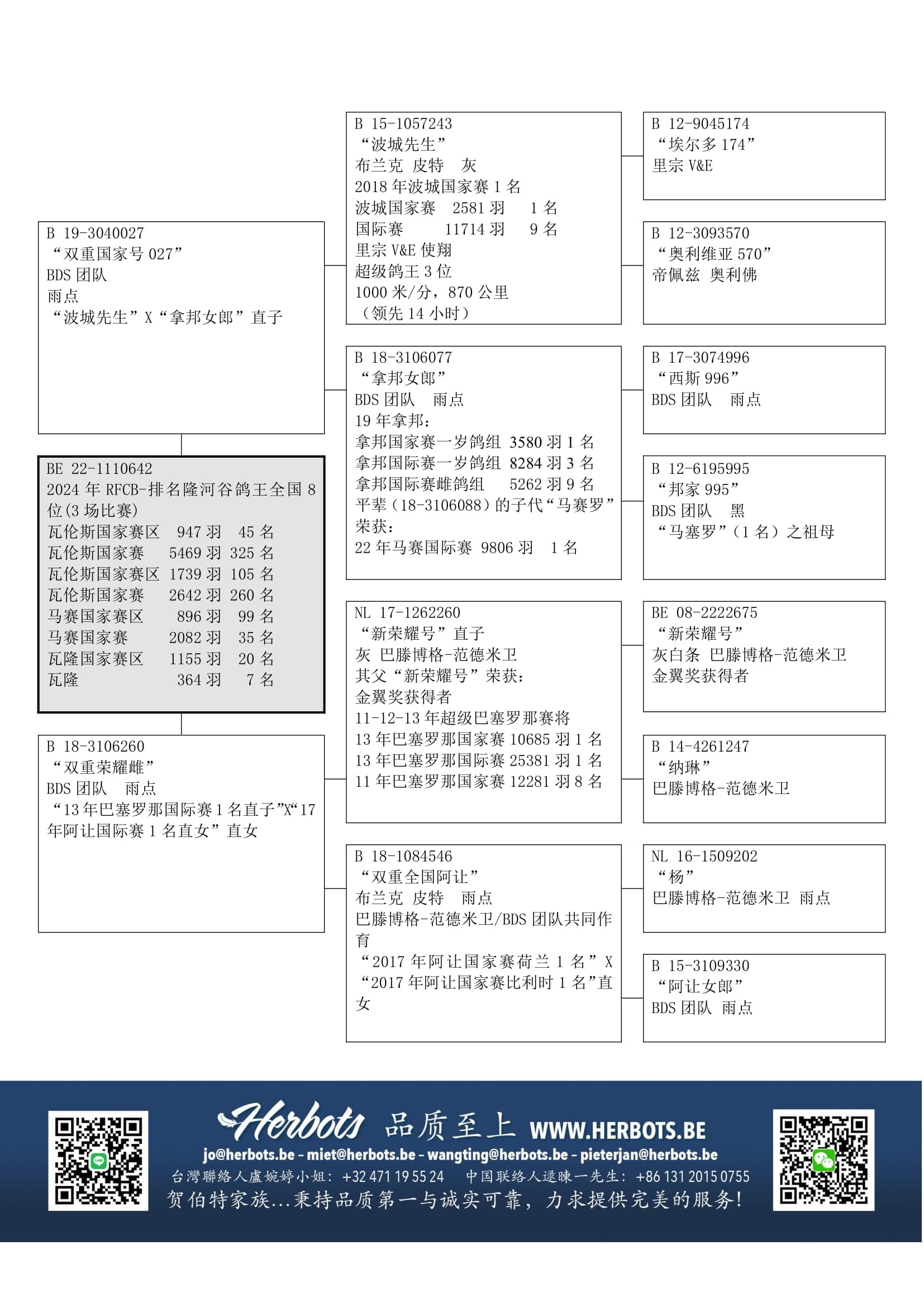 “新荣耀号直子” (“新荣耀号” 荣获巴塞罗那国际赛 25,382羽1名) x “B18-1084546”(17年阿让国际赛雌鸽组1名直女)作出