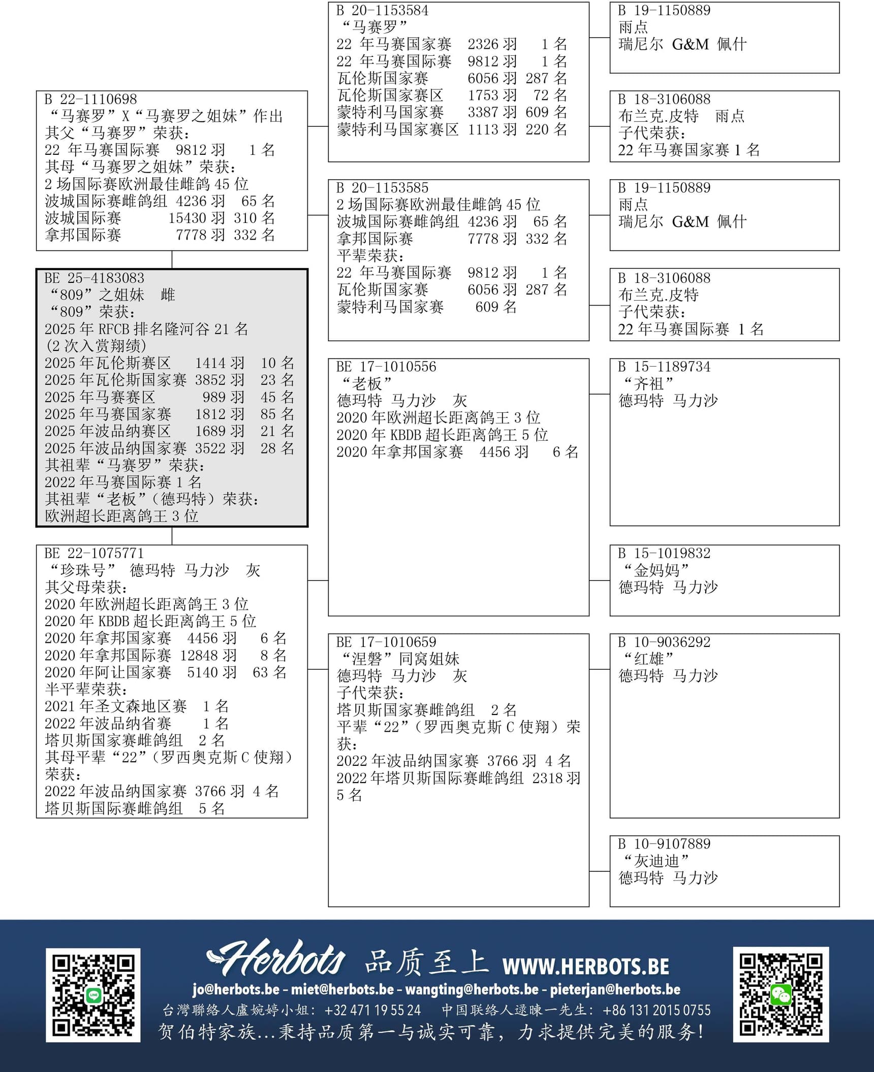 (2场国际赛欧洲最佳雌鸽45位) 作出