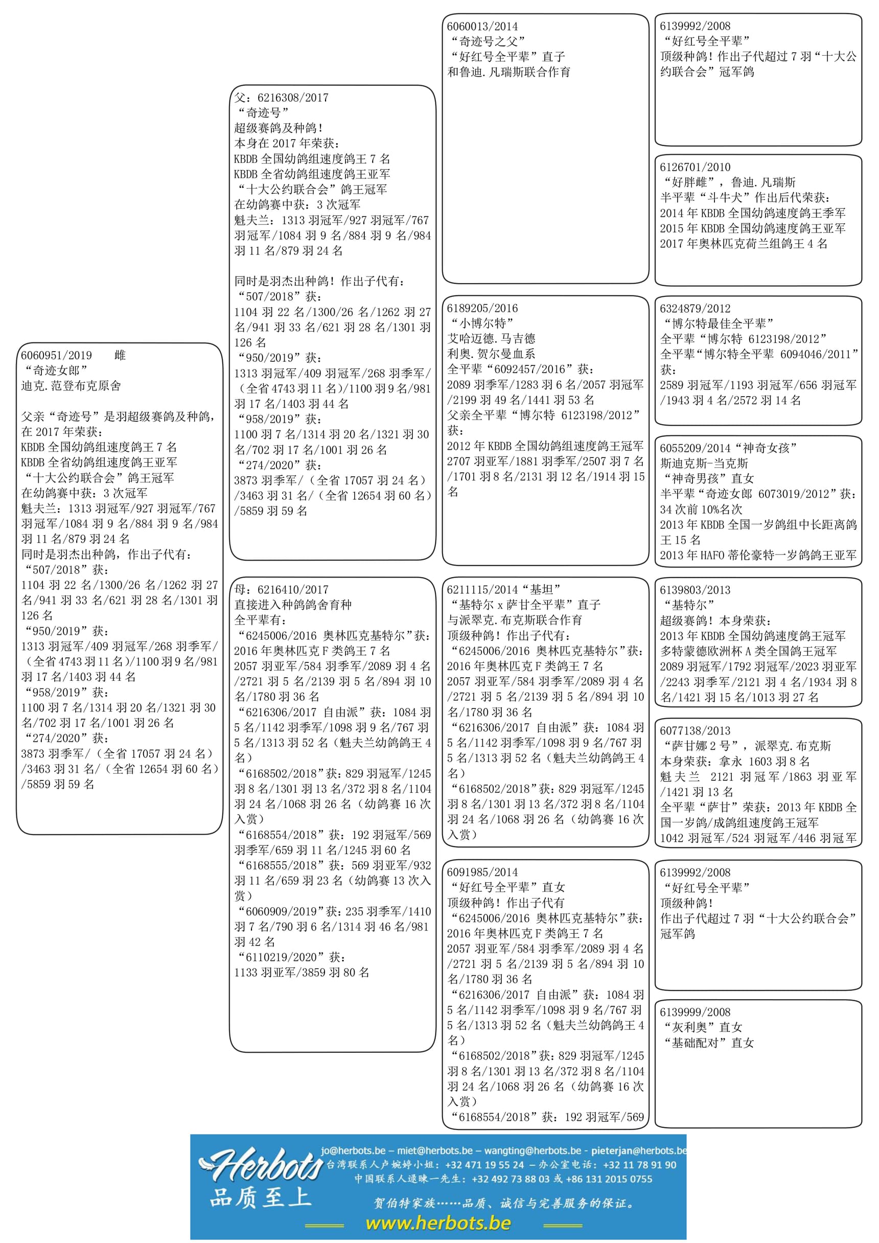 由“基特尔(全国鸽王冠军)”x“萨甘娜2号(派翠克.布克斯-全平辈“萨甘”获:全国鸽王冠军)”作出的孙女