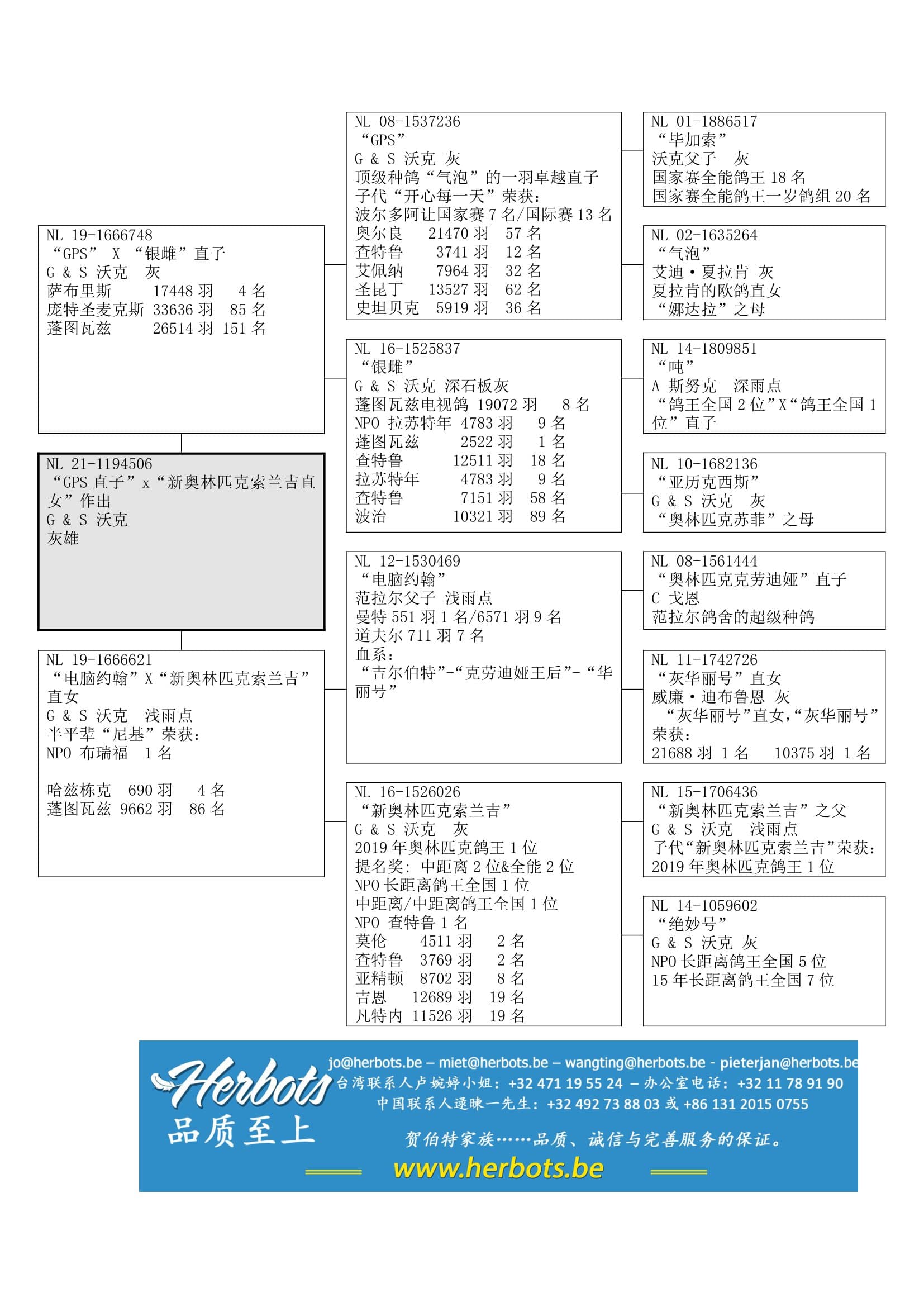 荣获: 萨布里斯 17,488羽4名 – 庞特33,636羽85名