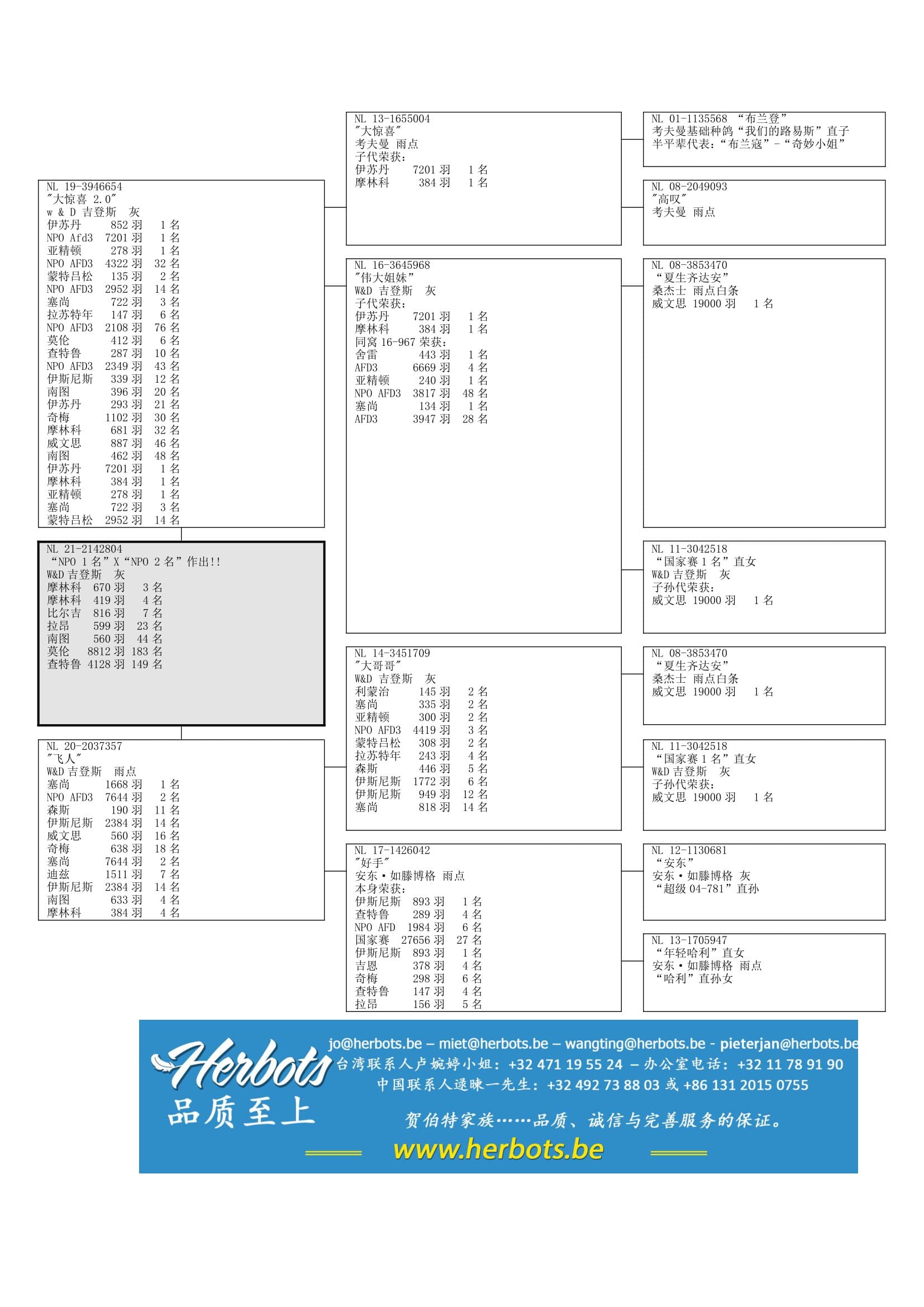荣获: 摩林科 670羽3名 – 摩林科 419羽4名 - 尼尔吉尼 816羽7名 –等等
