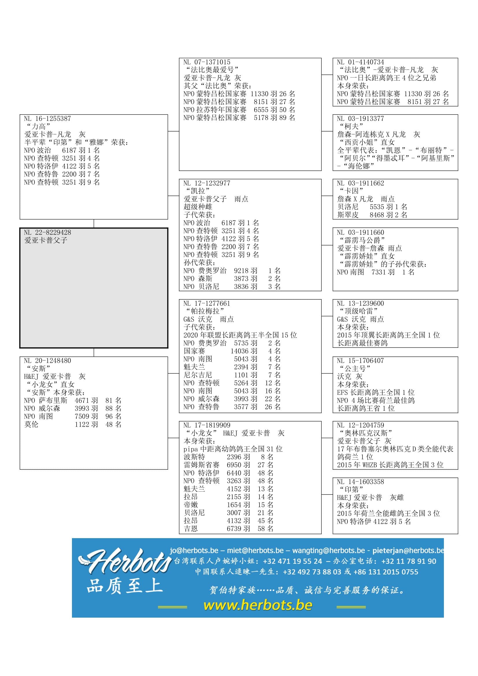 子代荣获: 2020年“北部联盟”长距离鸽王半全国15位