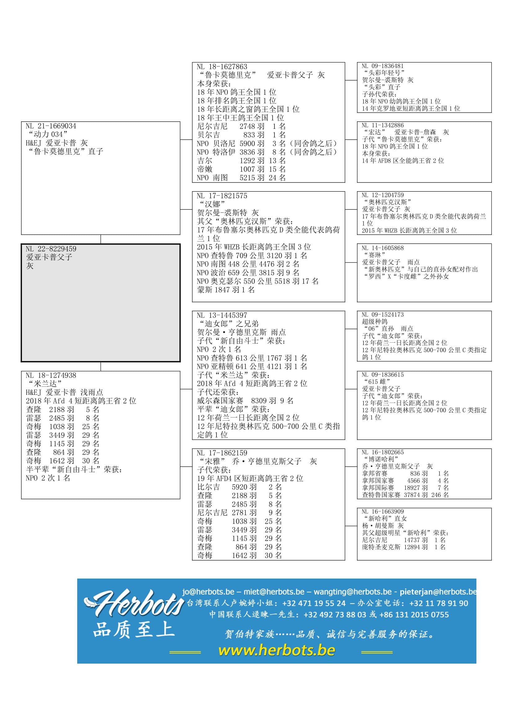 子孙代荣获: 南图省赛 10,295羽1名 – 帝嫩 2,438羽1名 – 摩林科 1,763羽1名 –  阿尔纳吉 公棚赛半决赛 945羽1名 – 21年金海岸公棚赛鸽王1位