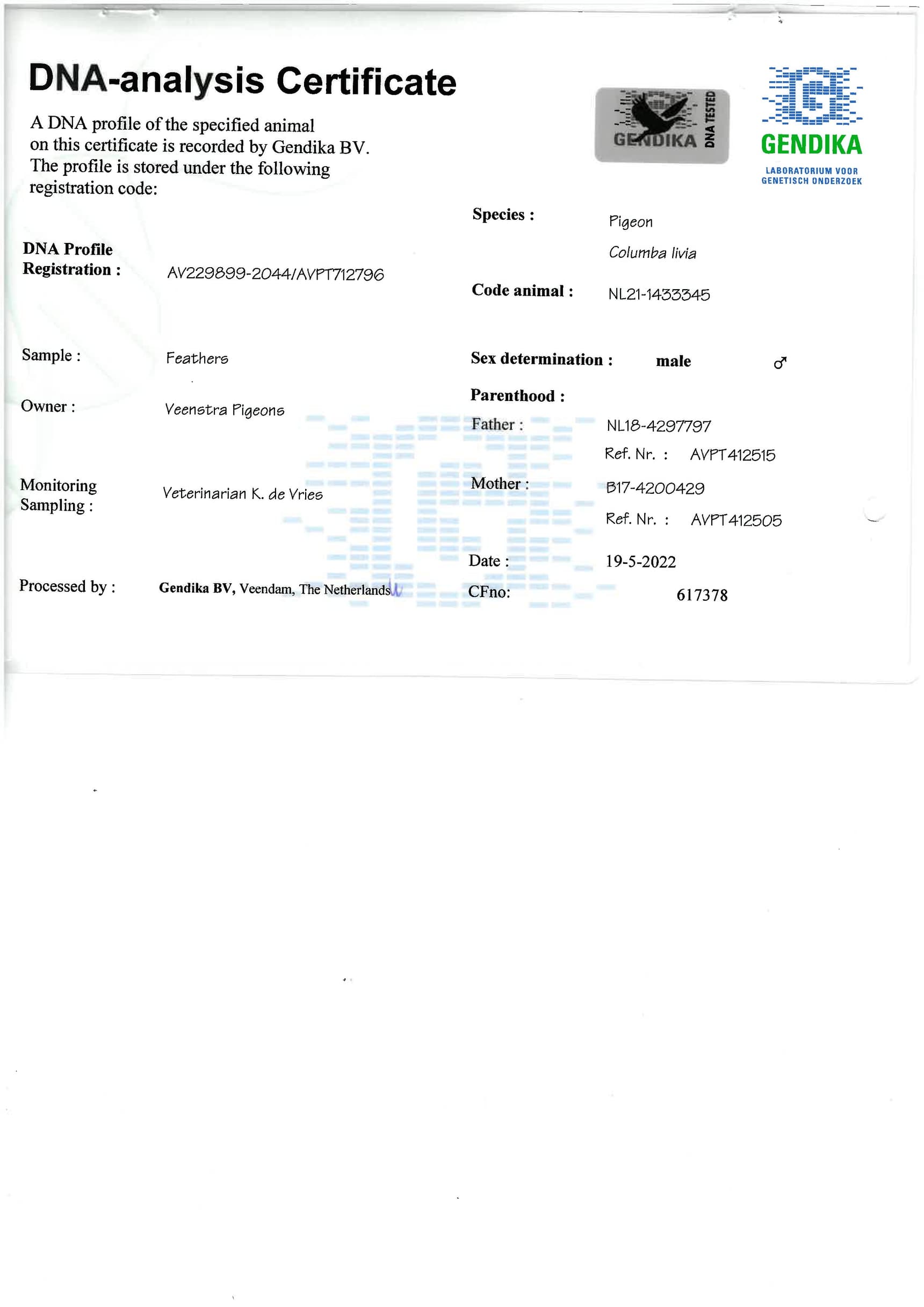 作育者: VEENSTRA PIGEONS 文斯特拉鸽