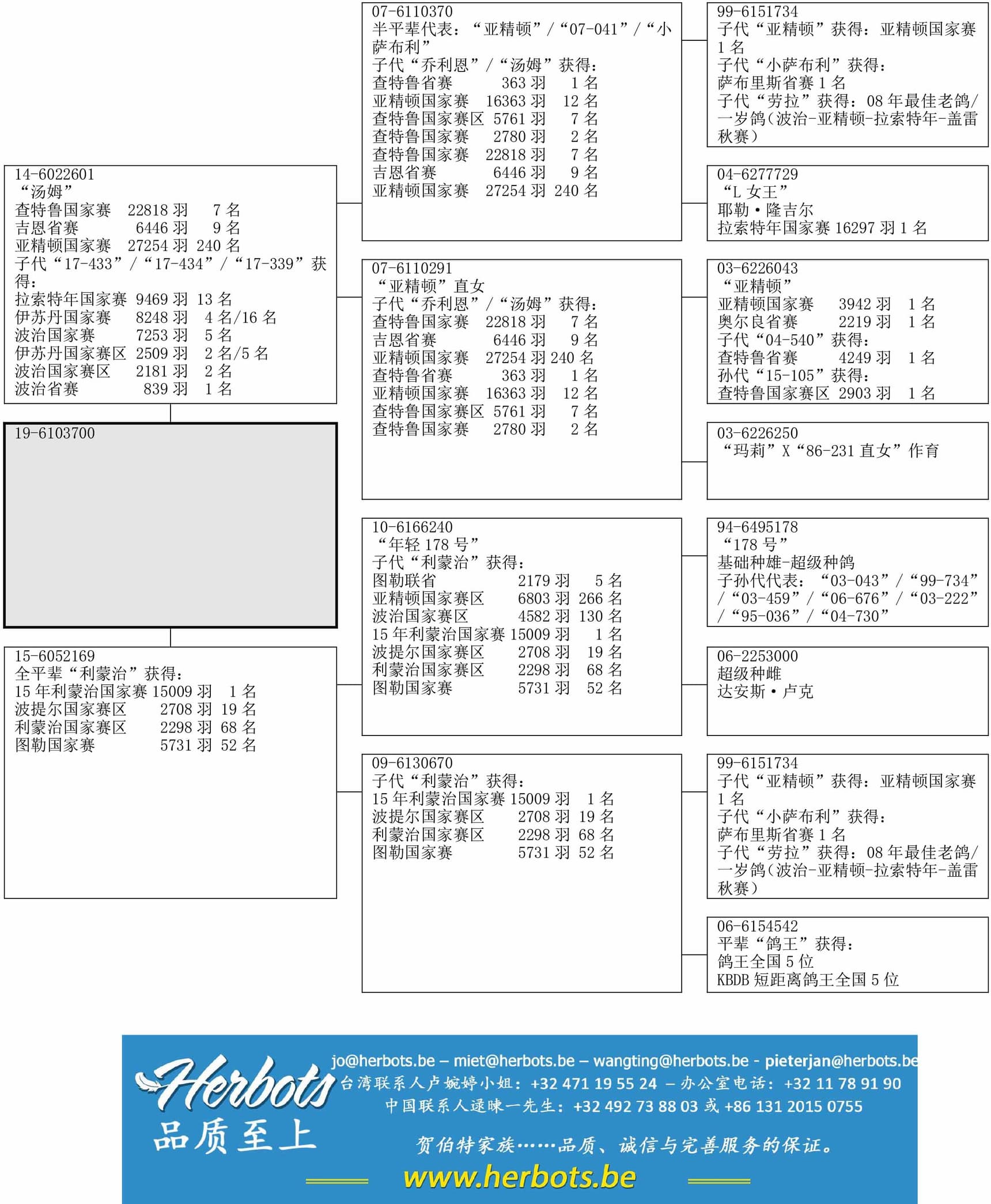 “L女王”之孙,“L女王”荣获:拉索特年国家赛1名;并且是隆吉尔-西安基础雌鸽