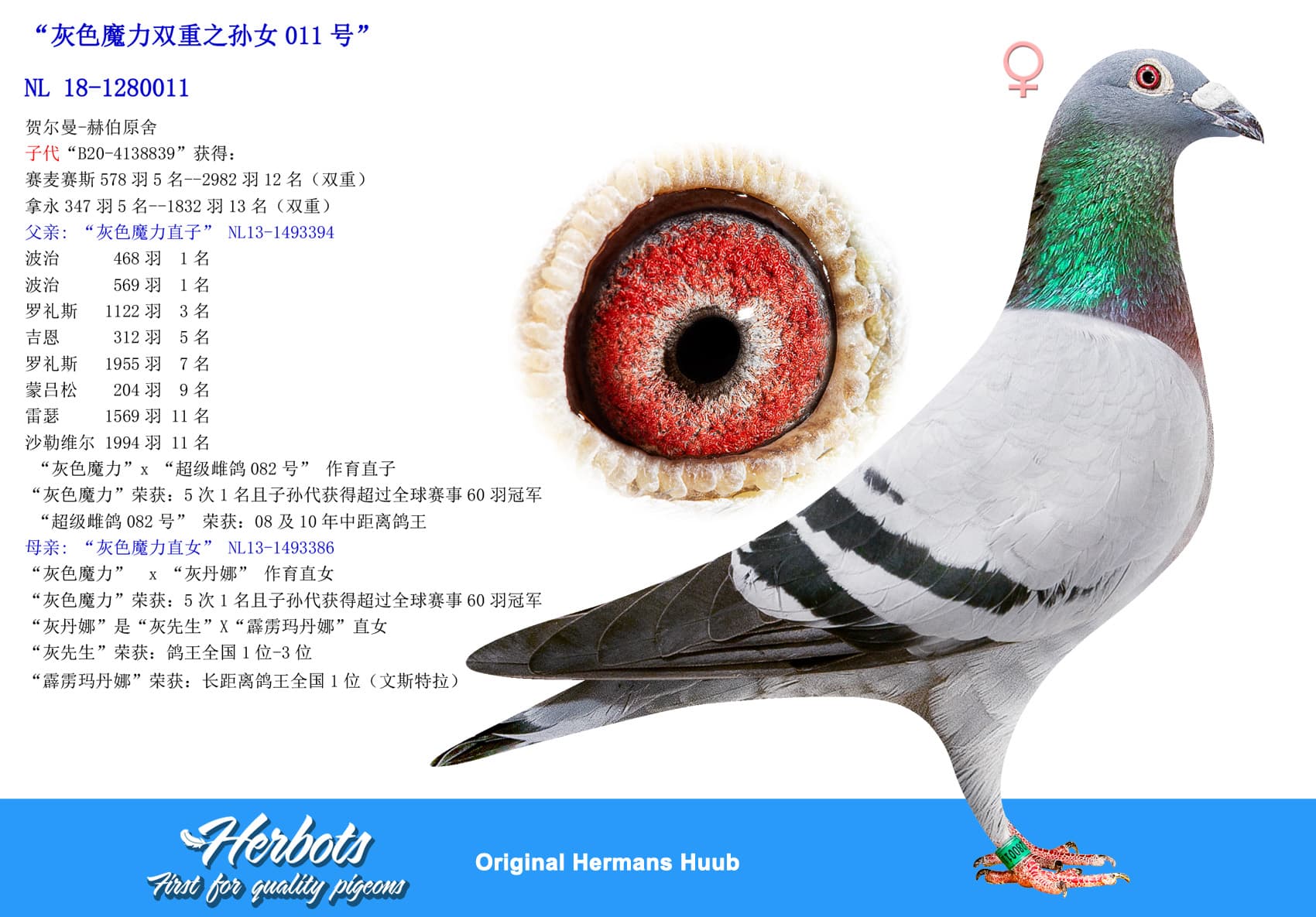 “灰色魔力”荣获:5次1名且子孙代获得超过全球赛事60羽冠军