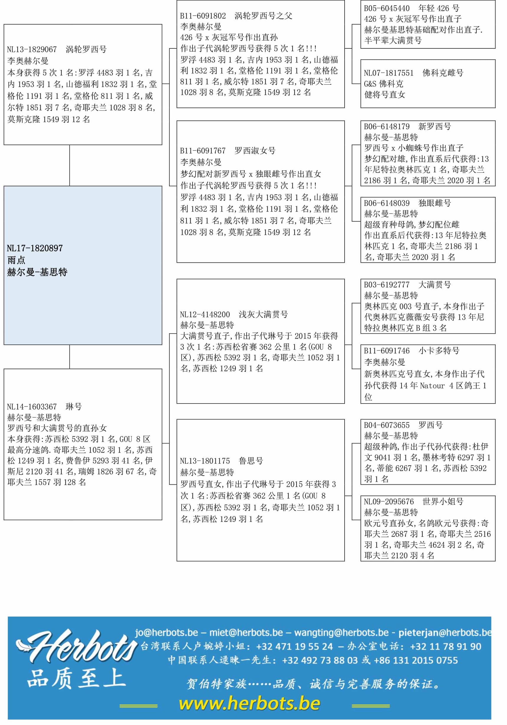 作出子代获得:2,522羽1名, 8,069羽最高分速鸽