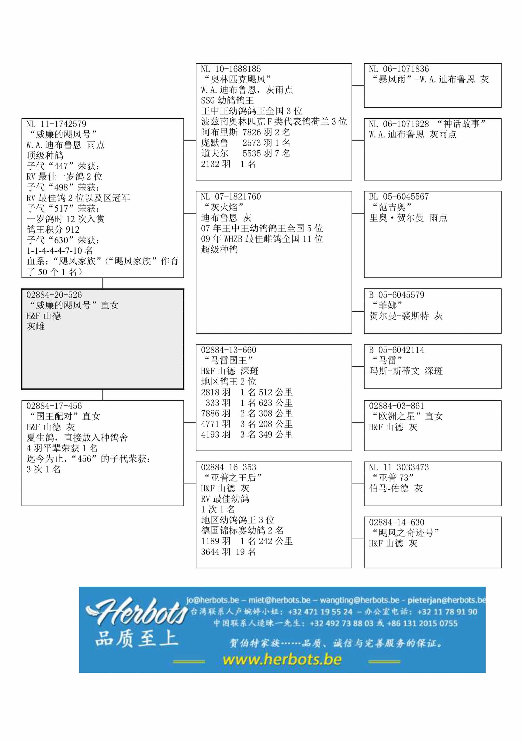 17年布鲁塞尔奥林匹克全能鸽王全国1位
