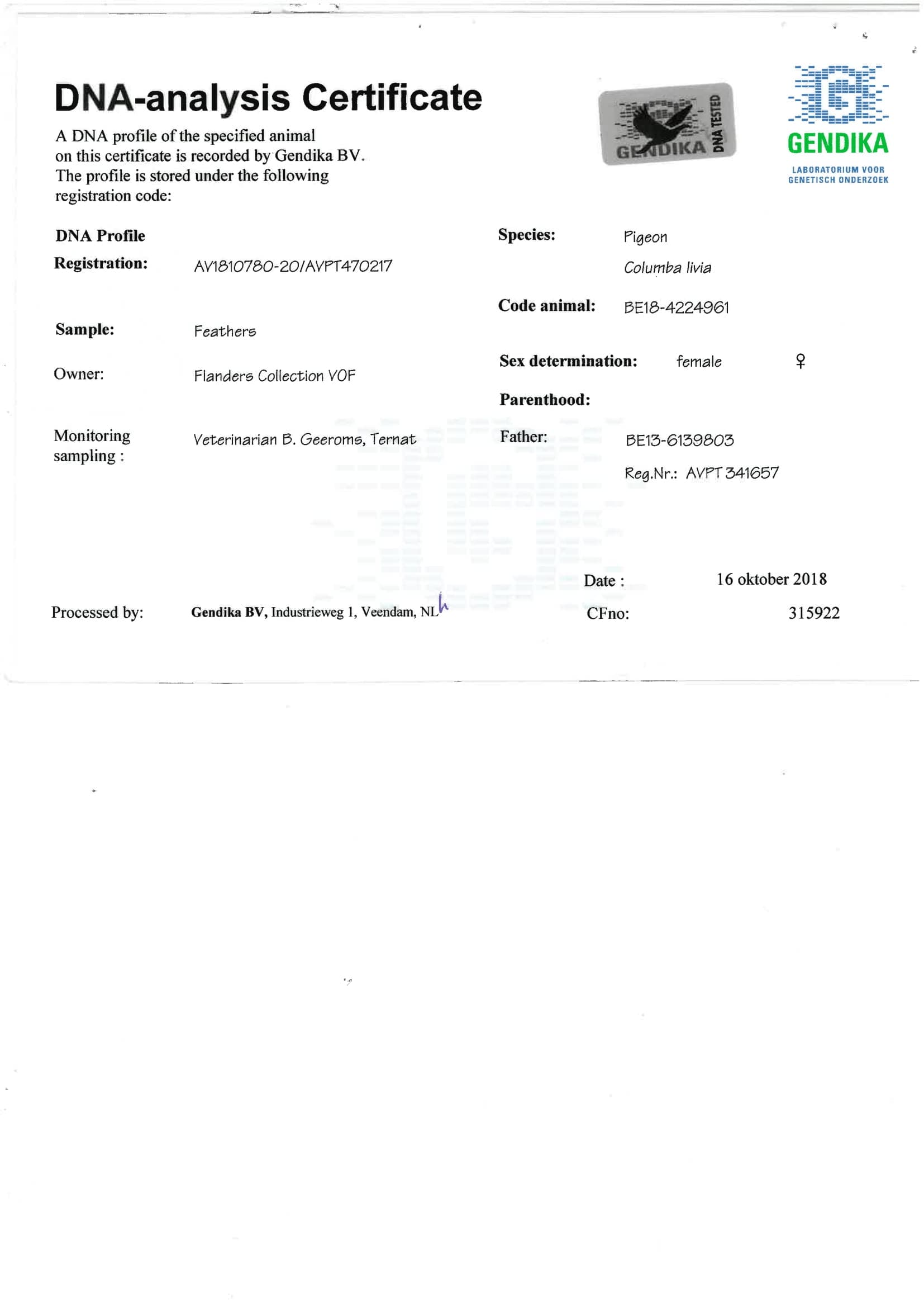 “奥林匹克罗西塔”之子代范登布克名鸽代表: is mother to famous Van den Bulck birds:
