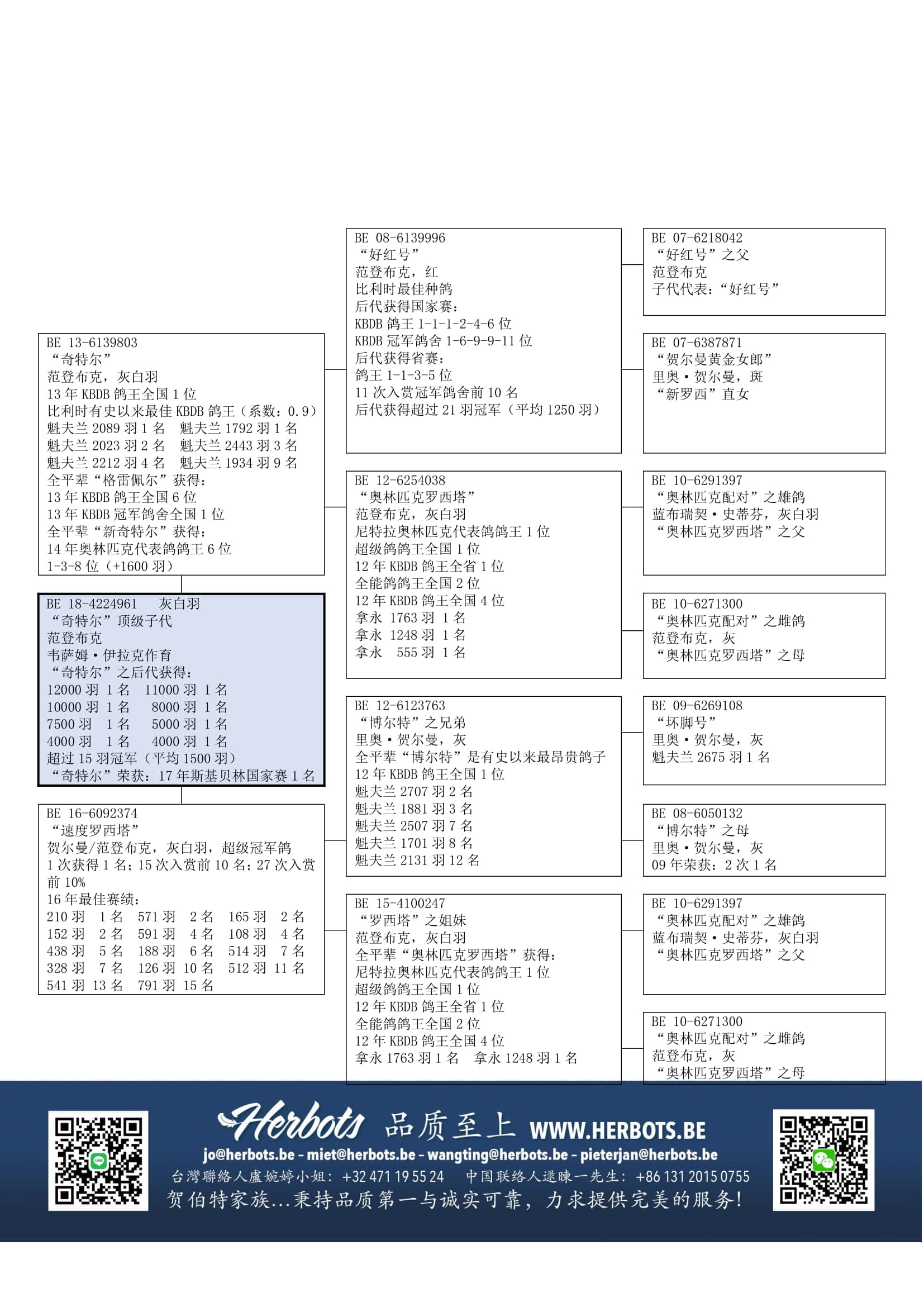 全平辈代表:冠军鸽“格雷佩尔”/“新奇特尔”/“金粉”等等