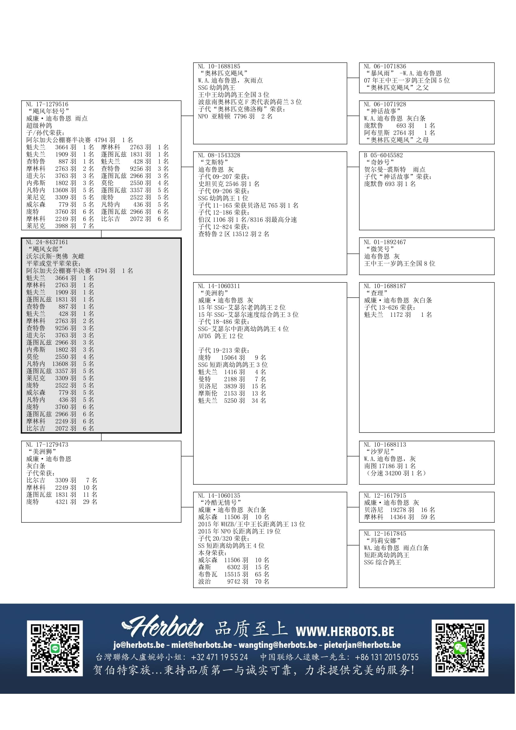 作出多代顶级赢家,如奥林匹克代表鸽“奥林匹克佛洛梅”