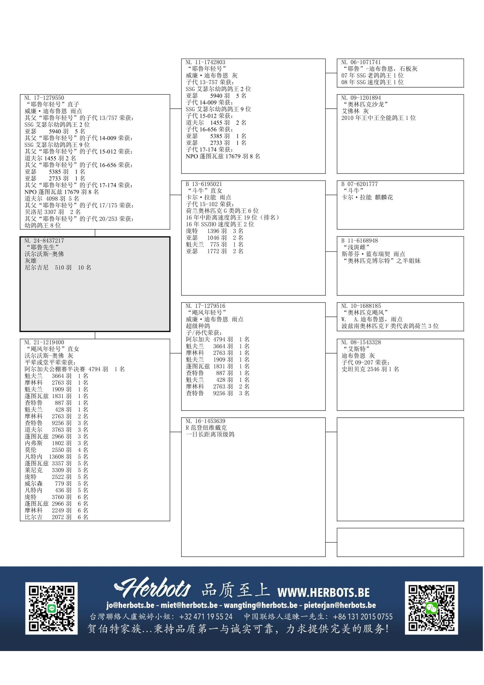 “耶鲁” (王中王短/中距离鸽王全国4位 - WHZB鸽王全国4位) x “奥林匹克沙龙” (王中王全能鸽王全国1位– 2010年多特蒙德欧洲杯全能鸽王2位 – 世界最佳鸽2位 - 3,257羽1名 – 2,366羽1名) 作出