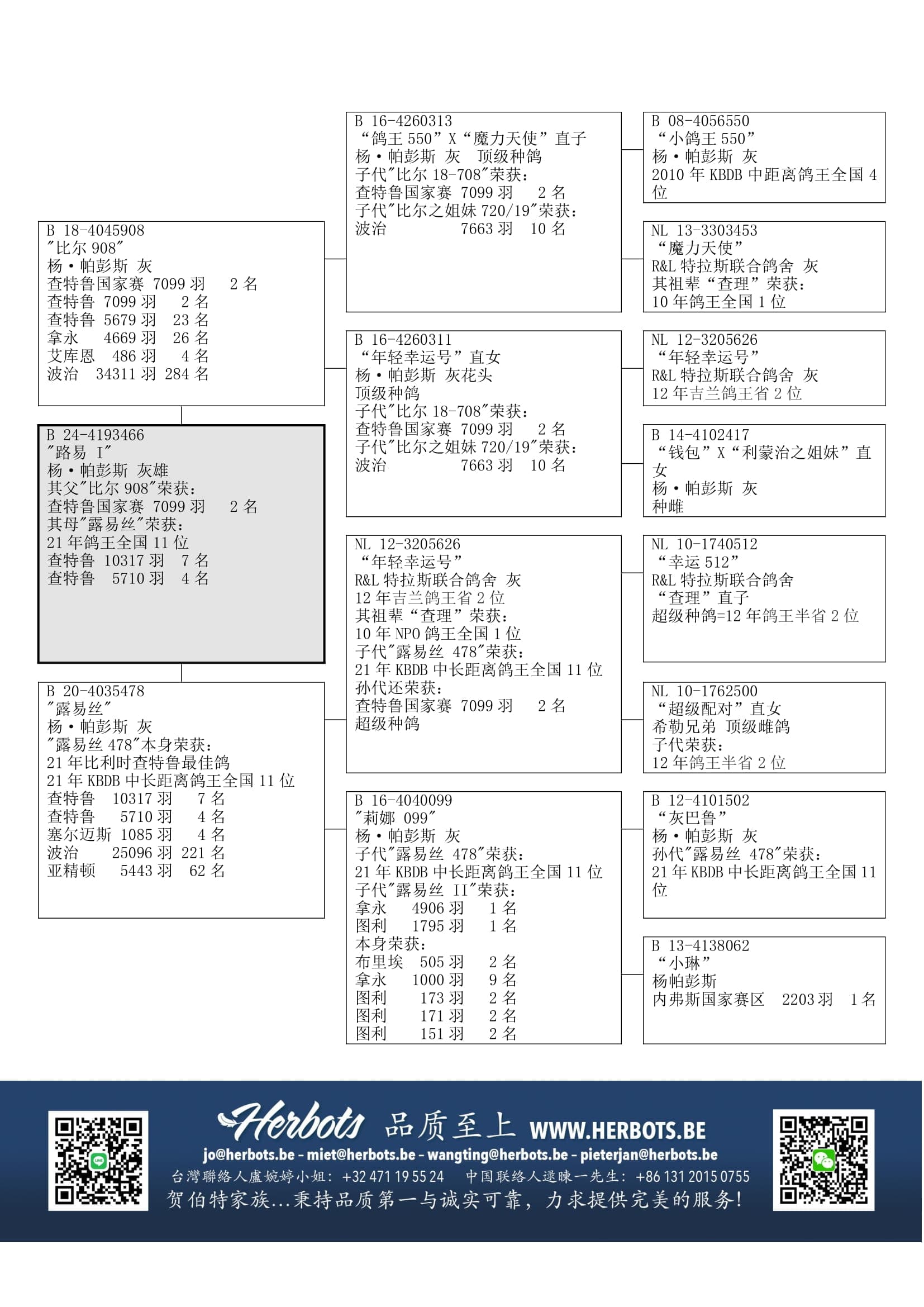 “查特鲁国家赛2名” x “21年比利时查特鲁最佳鸽”直子