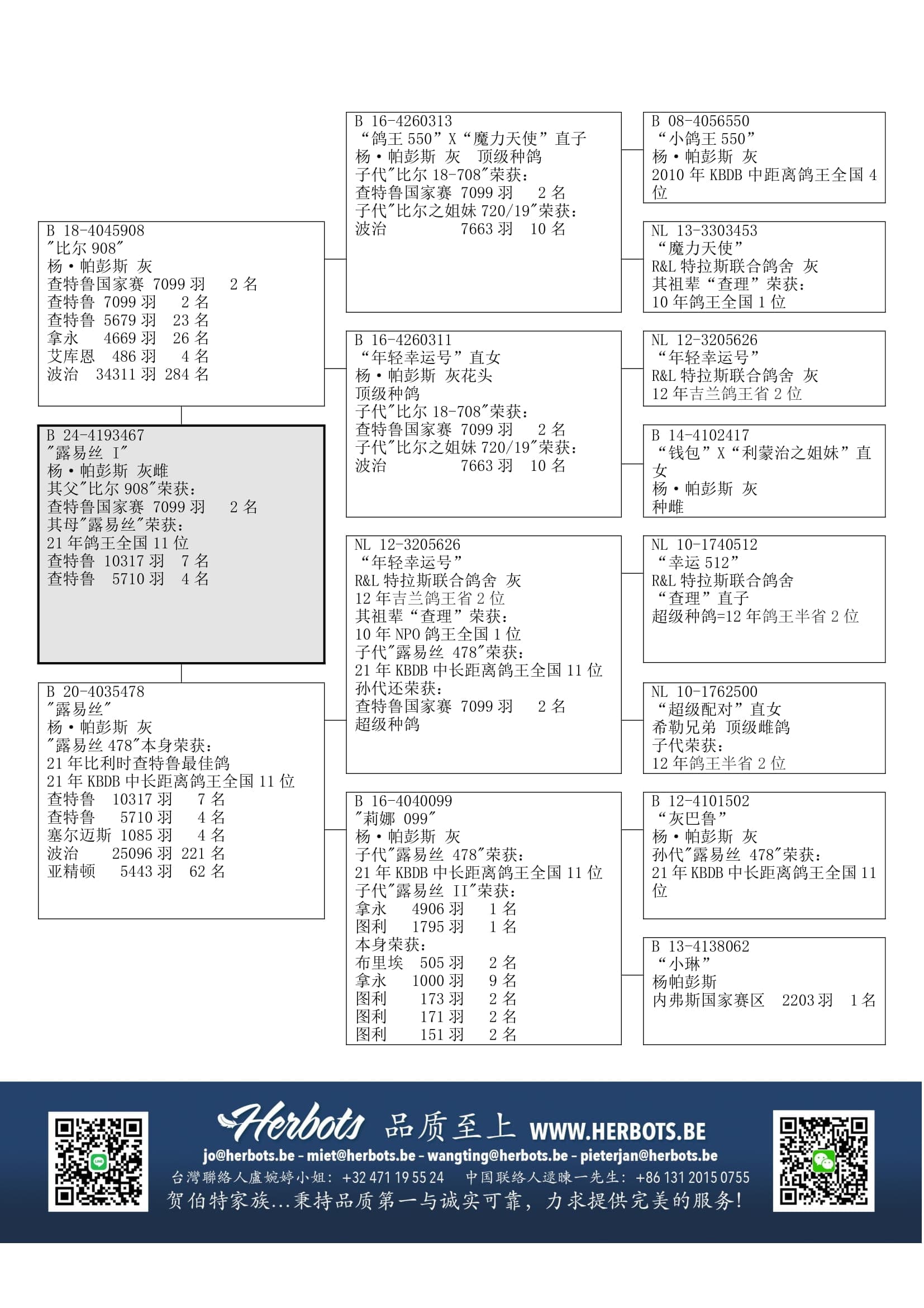 “查特鲁国家赛2名” x “21年比利时查特鲁最佳鸽”直女